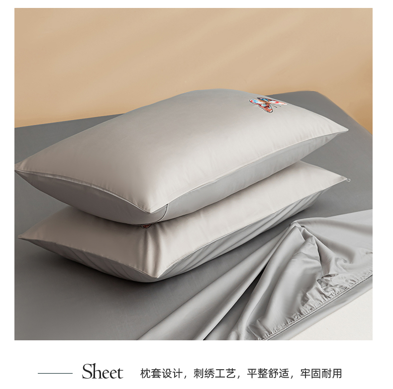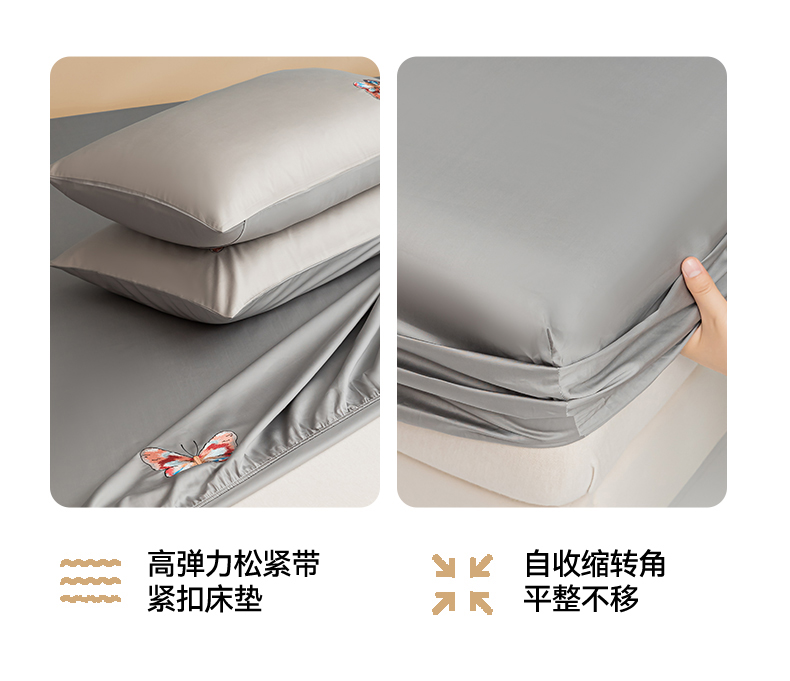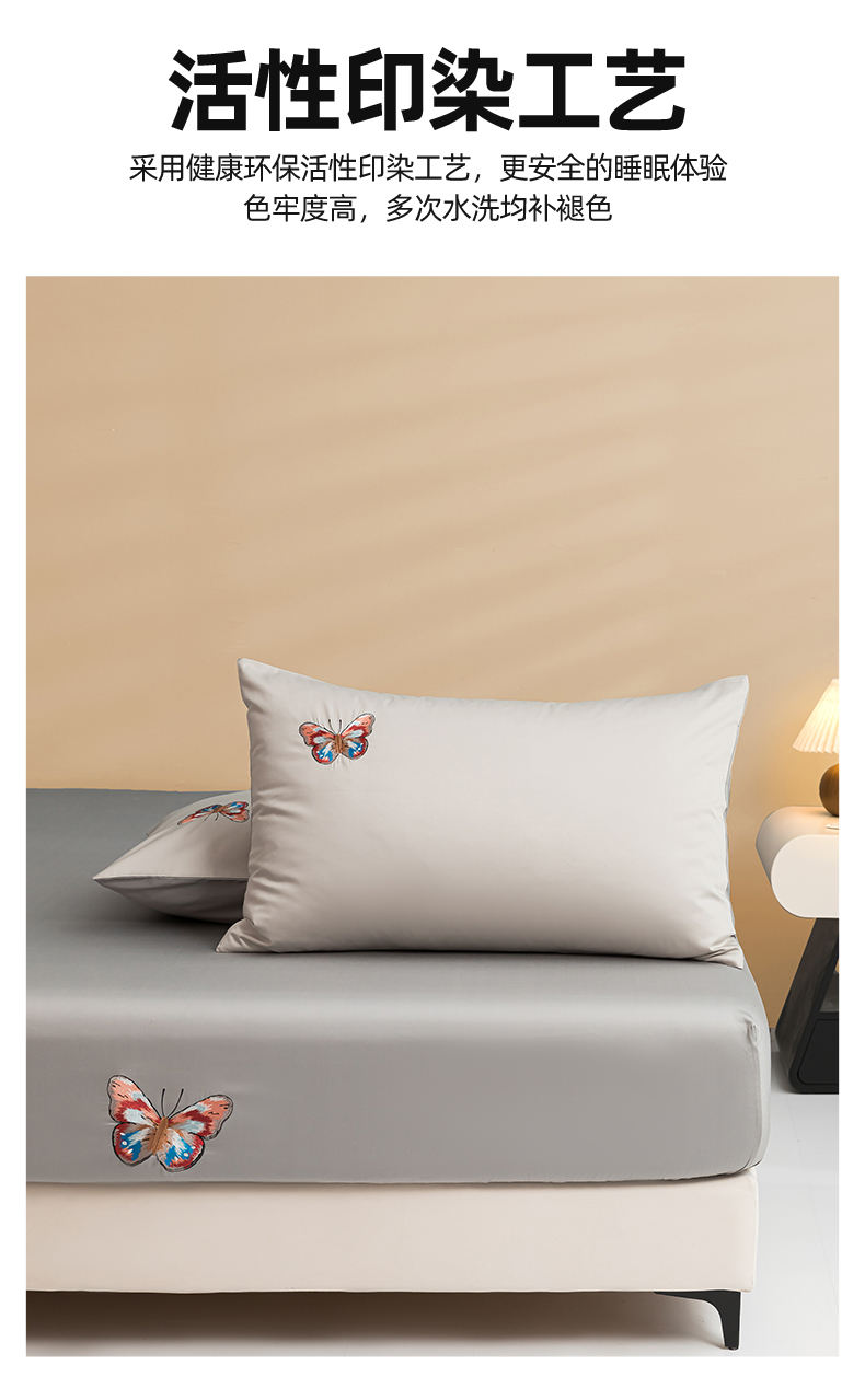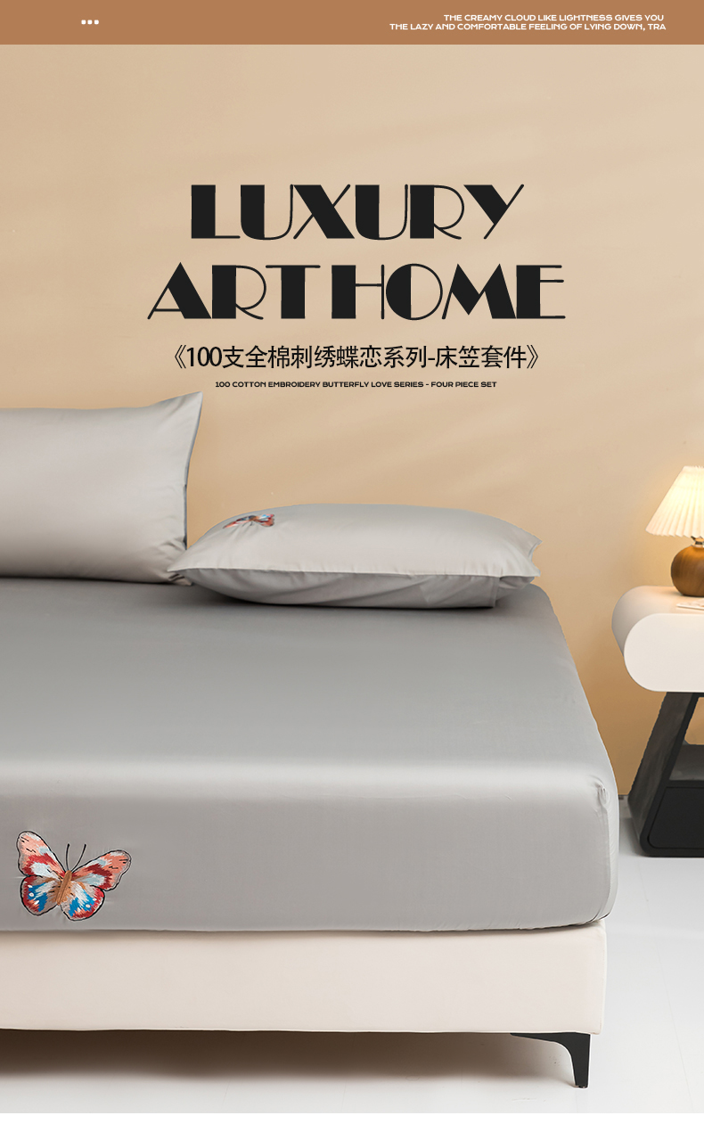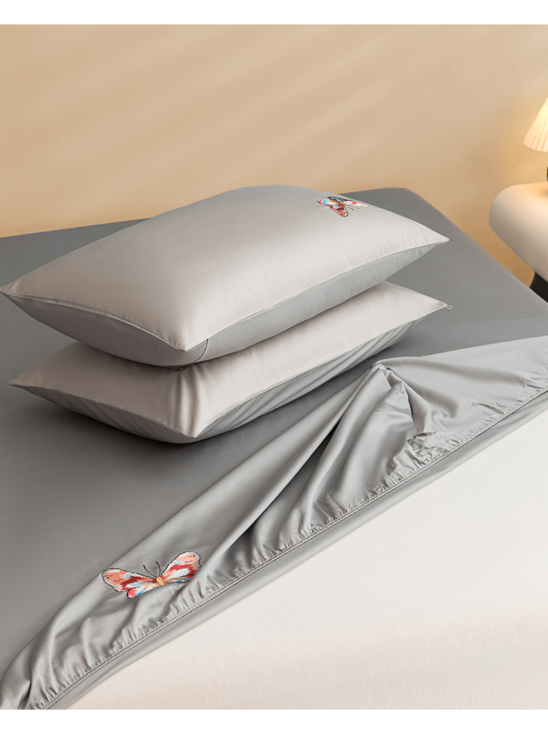 • 91家纺网 家纺一手货源 找家纺 蓝米卡夫 2024新款A类100支全棉刺绣蝶恋系列单床笠三件套 蝶恋100支-月影灰