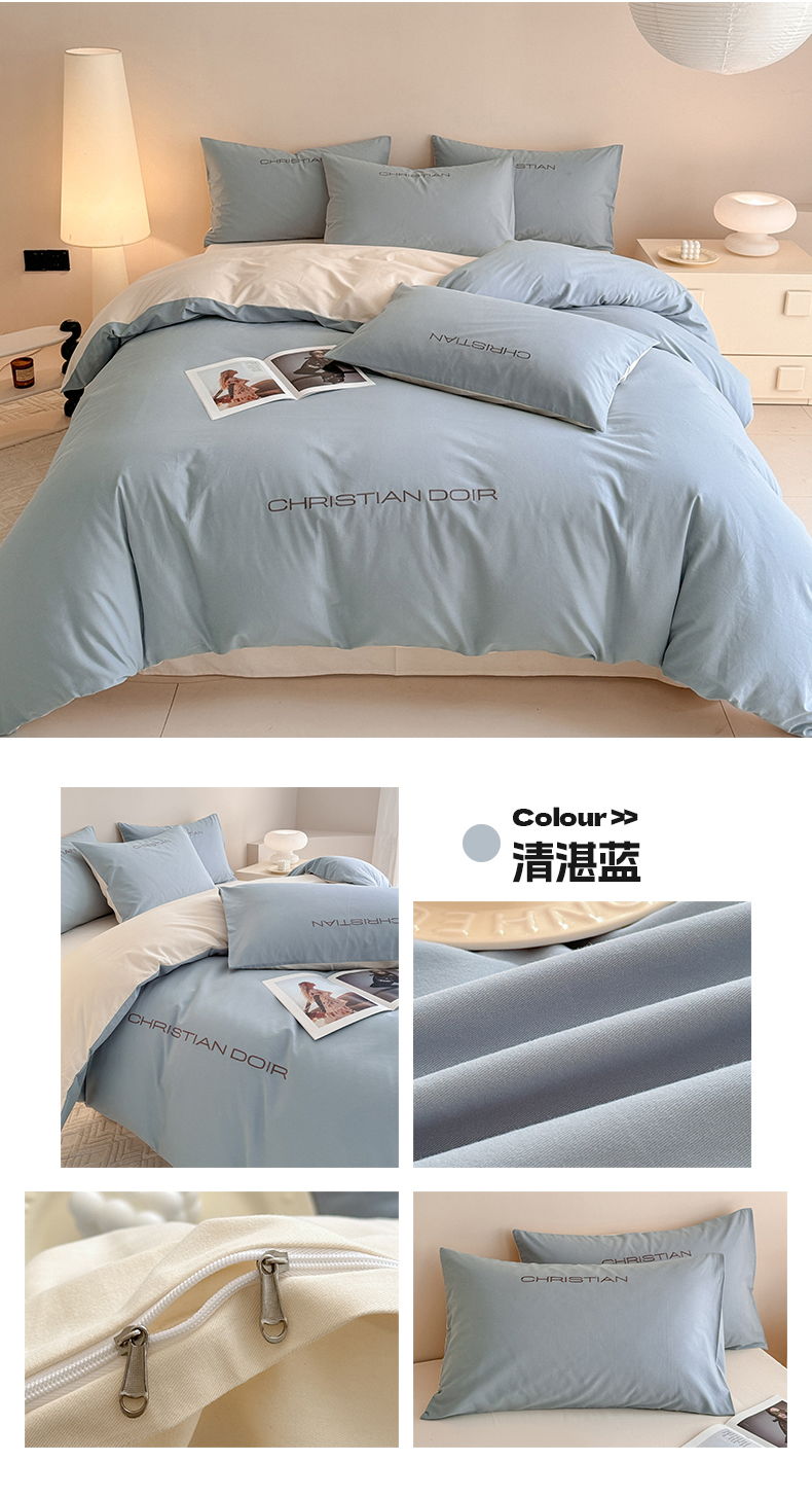 当前位置: 91家纺网 > 商品网购 > 床品套件 > 四件套 > 全棉普通四件套 > 懒猫家纺 2024新款简约轻奢款全棉磨毛绣花四件套 清湛蓝