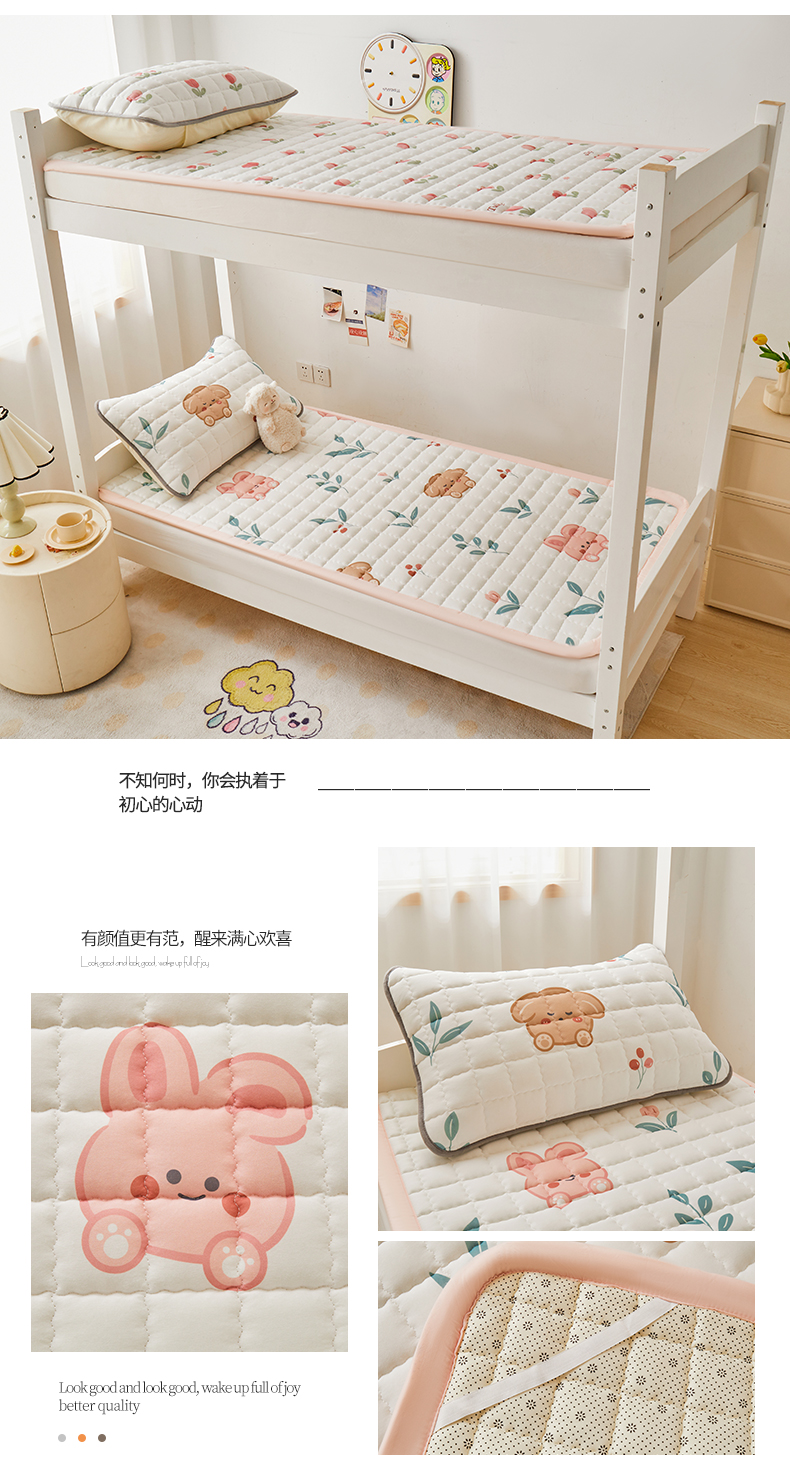 商品名称:花言狐语 2025新款水洗棉加厚夹棉防滑床褥子(印花系列)-学生单人床 可爱兔