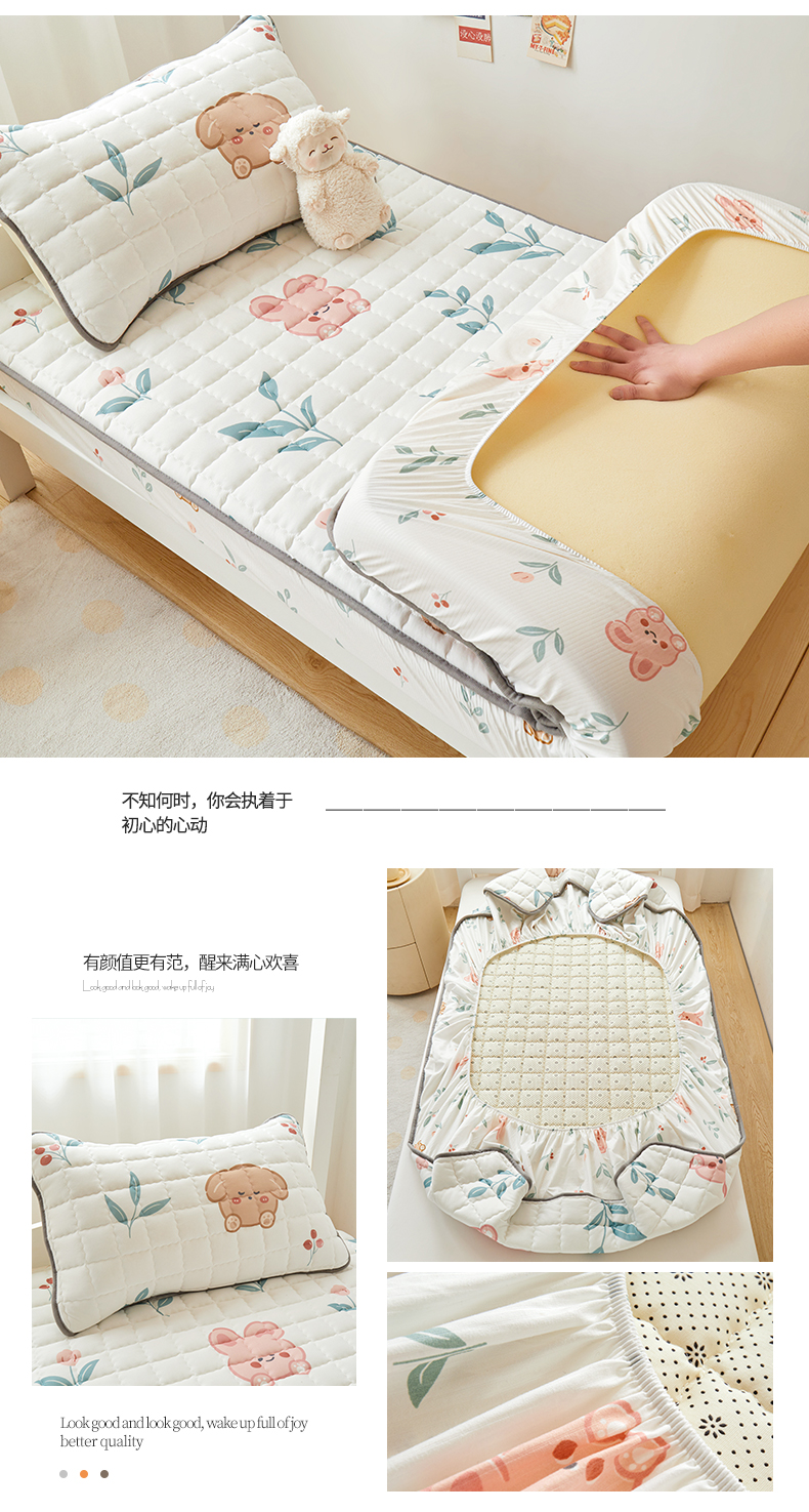 商品名称:花言狐语 2025新款水洗棉夹棉加厚床笠(印花系列)-单人床 可爱兔