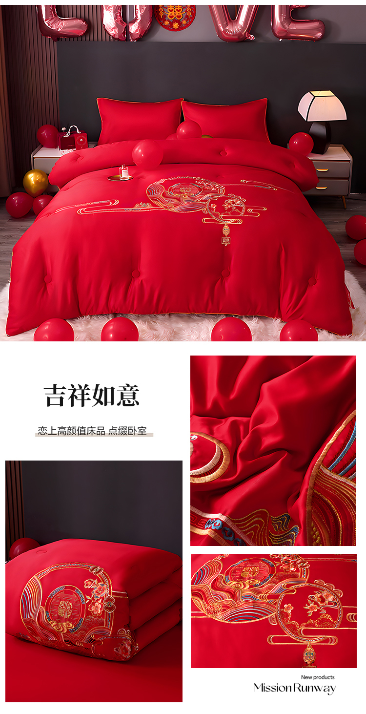 (总)壹张床2025新款婚庆水洗棉大豆冬被,大喜日子