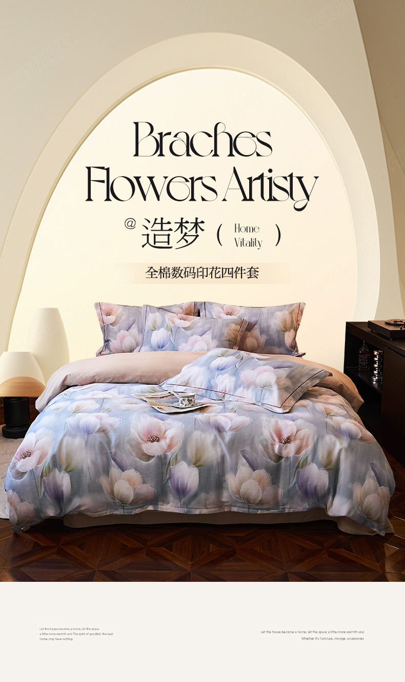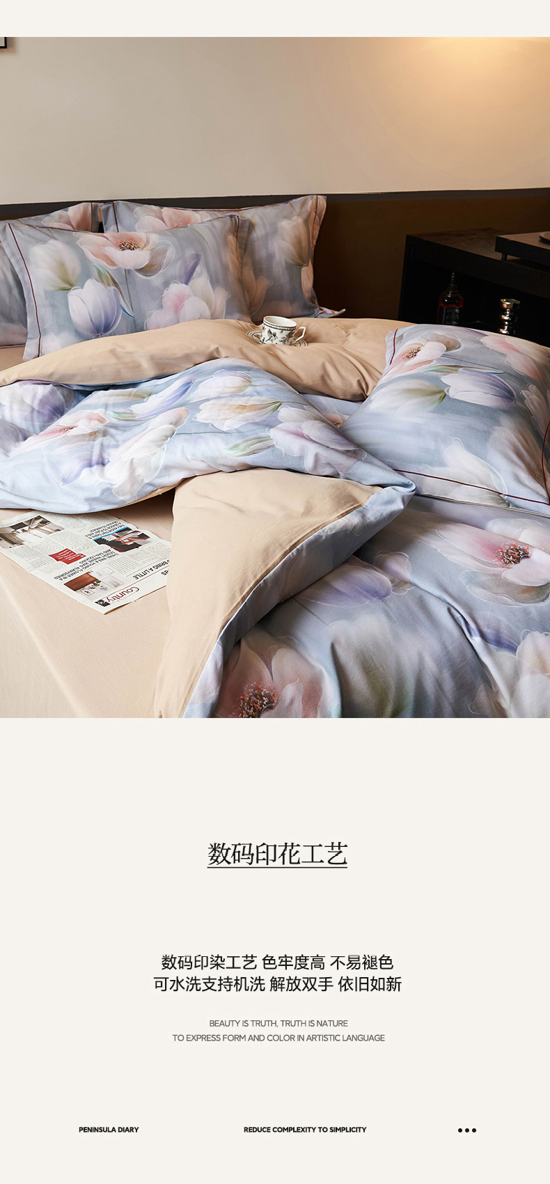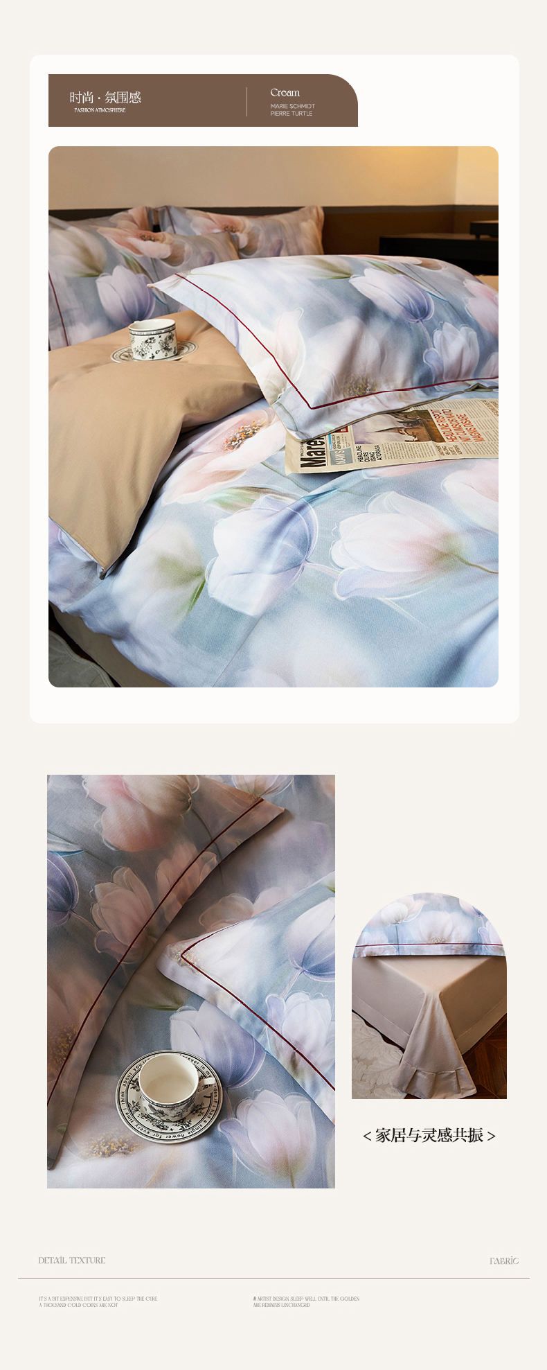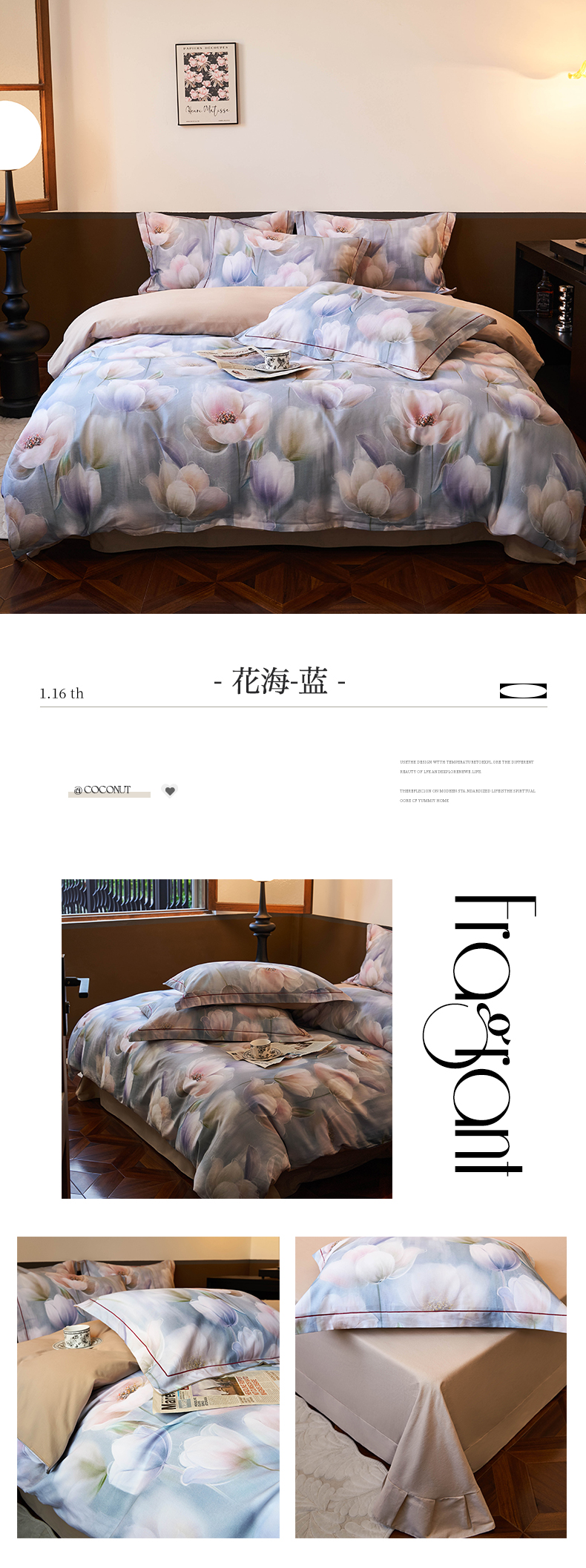 (总)帅露家纺 2025新款A类棉麻活性印染四件套系列,花间意境-红,花间意境-灰,花香满园-红,素锦-咖,香叶时代,映霜-灰,映霜-绿