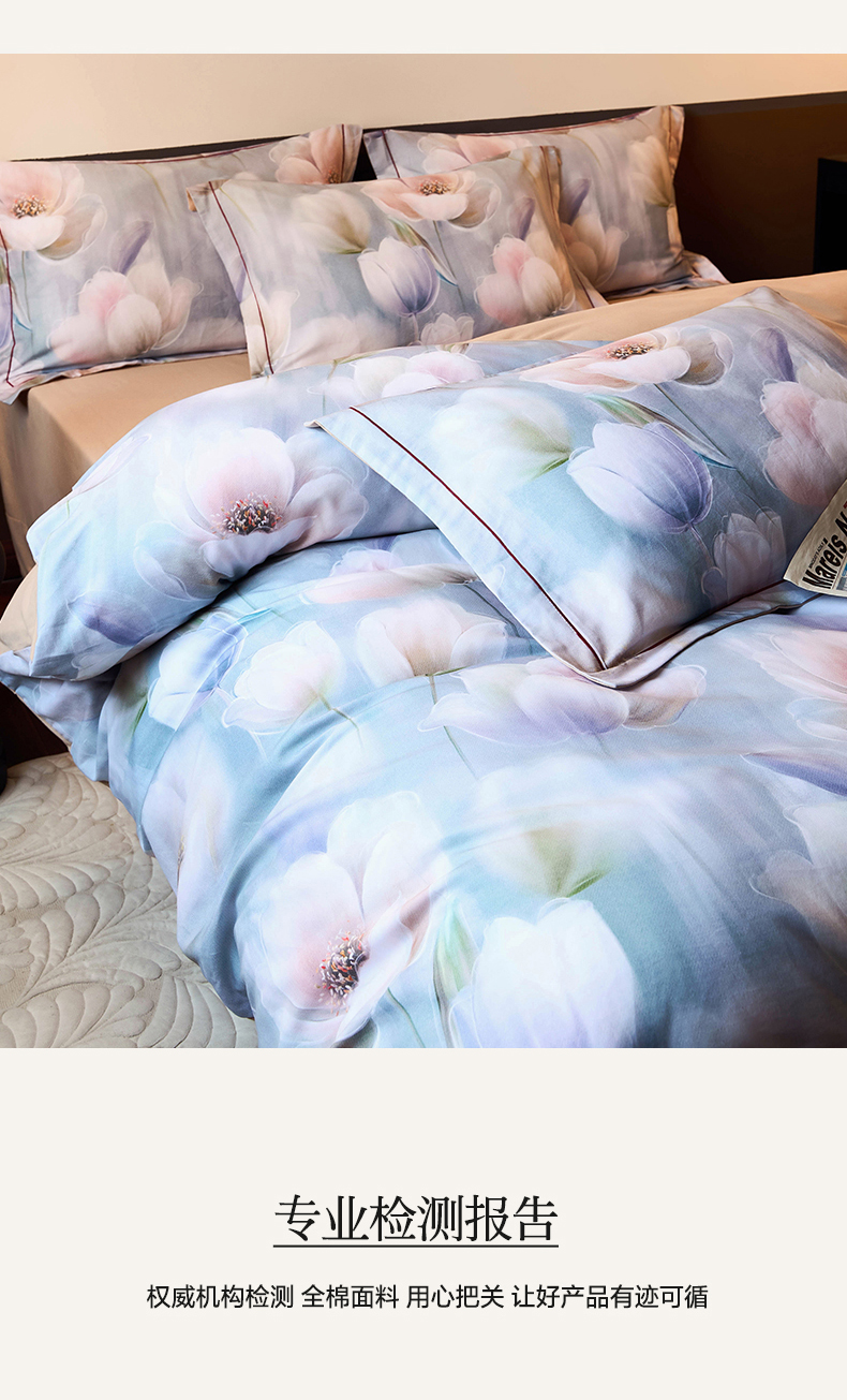 商品名称:帅露家纺 2025新款全棉数码印花加厚磨毛四件套【提供买家秀】 花海-蓝