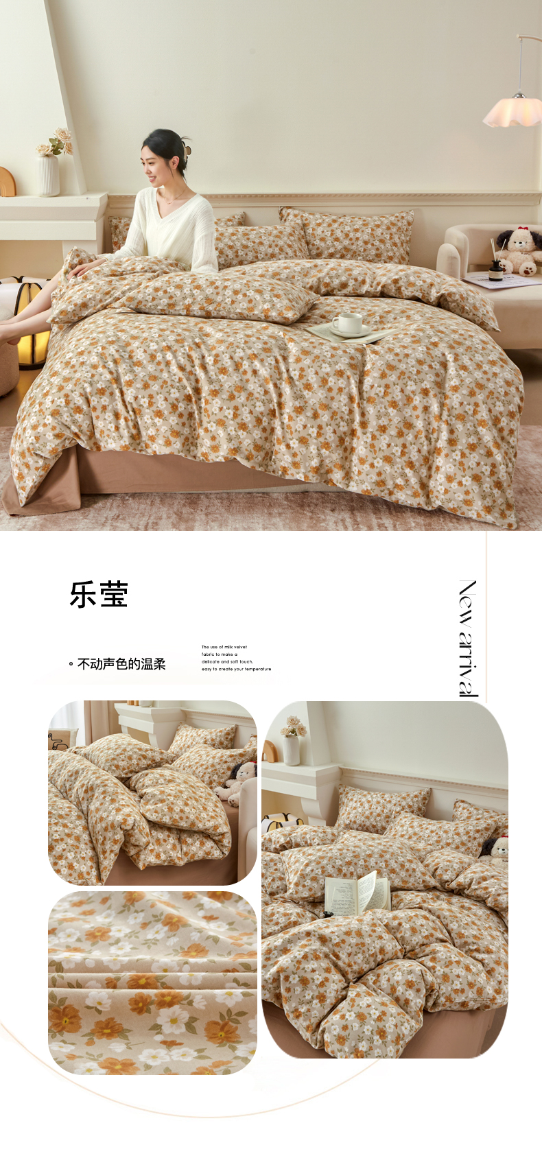 商品名称:柠馨 2024新款基础款全棉磨毛纯色四件套 乐莹