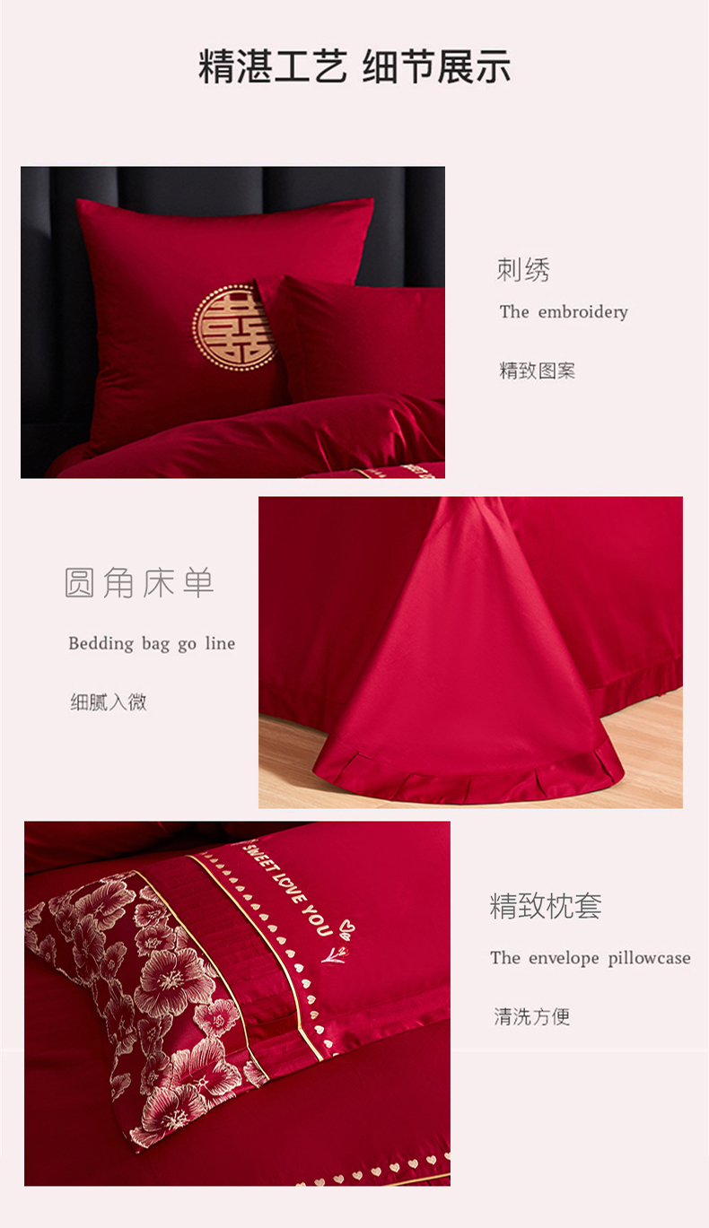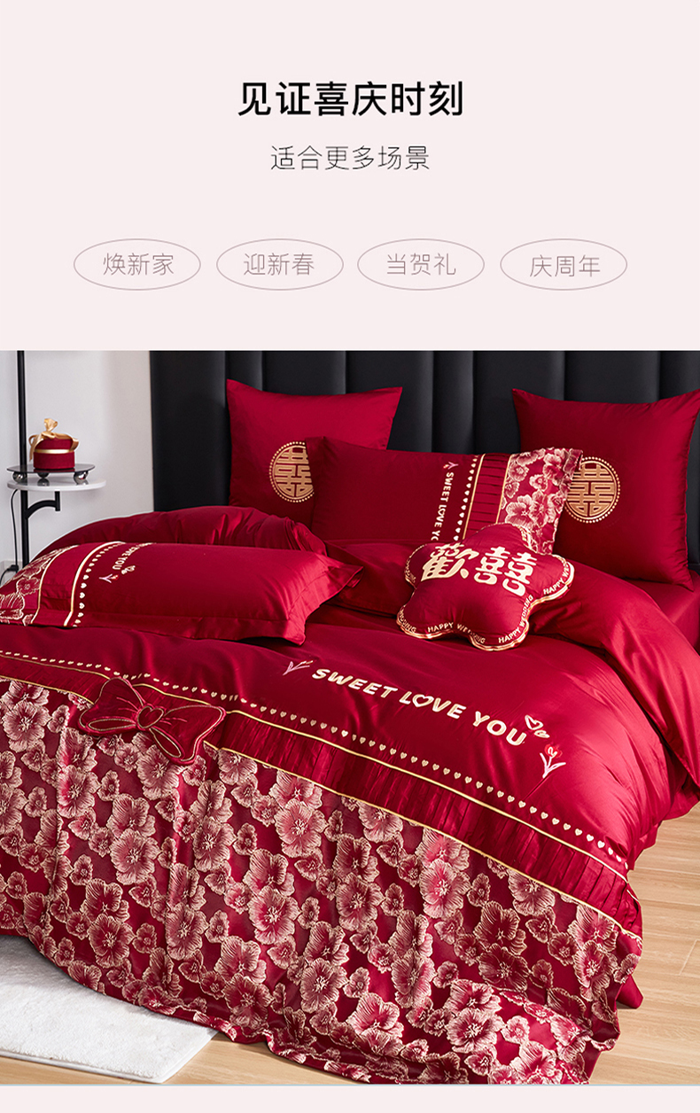 (总)甜咪咪婚庆 2025新款50支长绒棉全棉婚庆床单床盖四件套多件套刺绣工艺,洛可可,爱恋小熊,爱意久久,多子多福,花田喜事,节节高升,克拉恋人,浪漫情怀,怦然心动红,怦然心动玉,甜心玫瑰,温莎公主,伊甸园,醉红妆