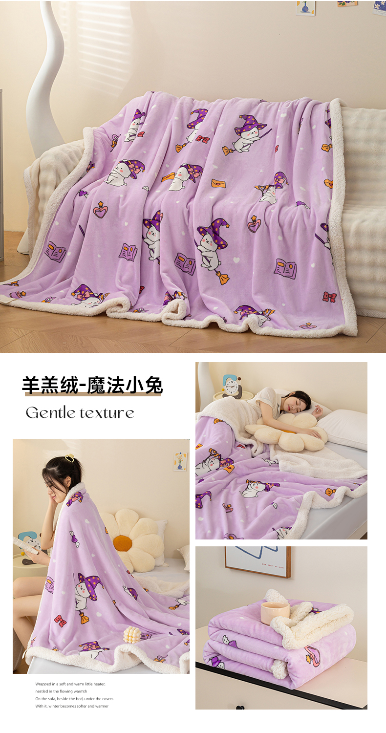 商品名称:雅萱家纺 2024新款羊羔绒+牛奶绒毛毯披肩毯盖毯 羊羔绒-魔法小兔