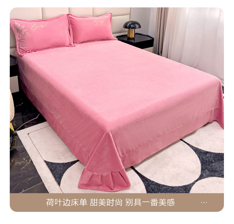(总)星尚家纺 2024新款加厚保暖全消光牛奶绒夹棉床裙四件套-玫瑰之恋,粉玉,寐紫,浅蓝,水绿