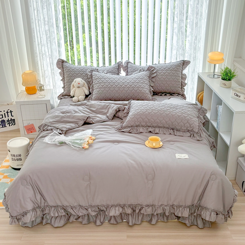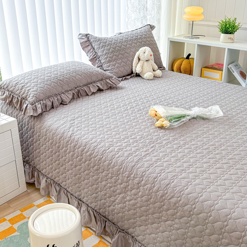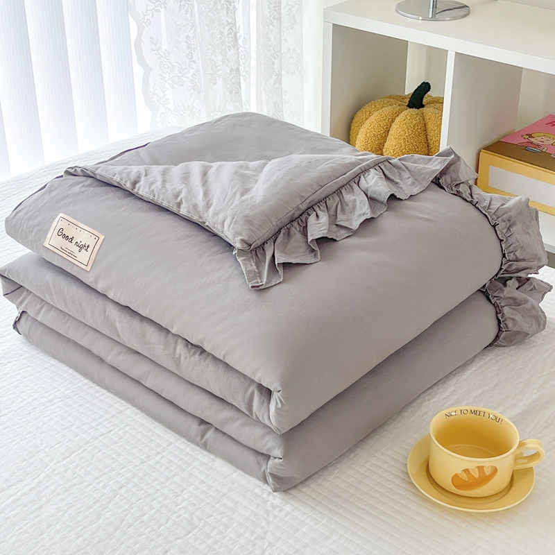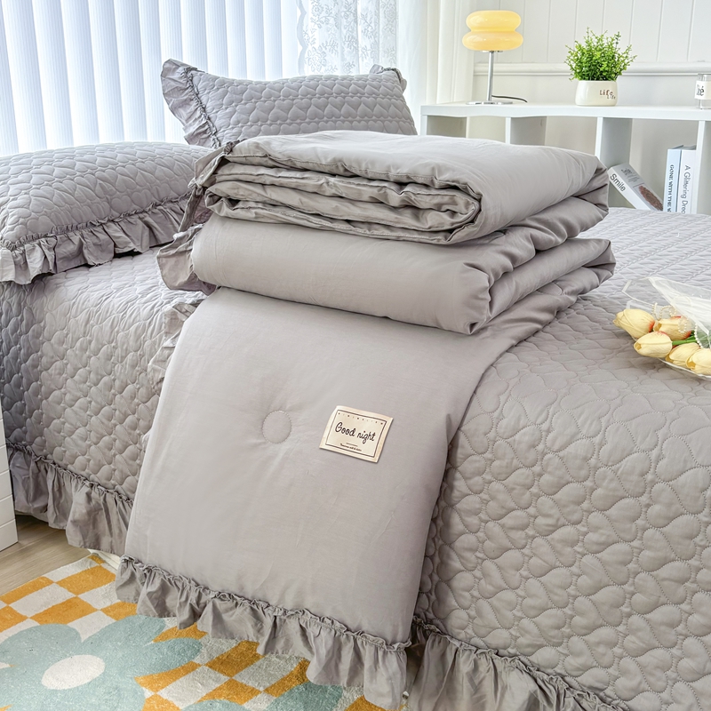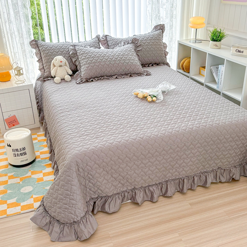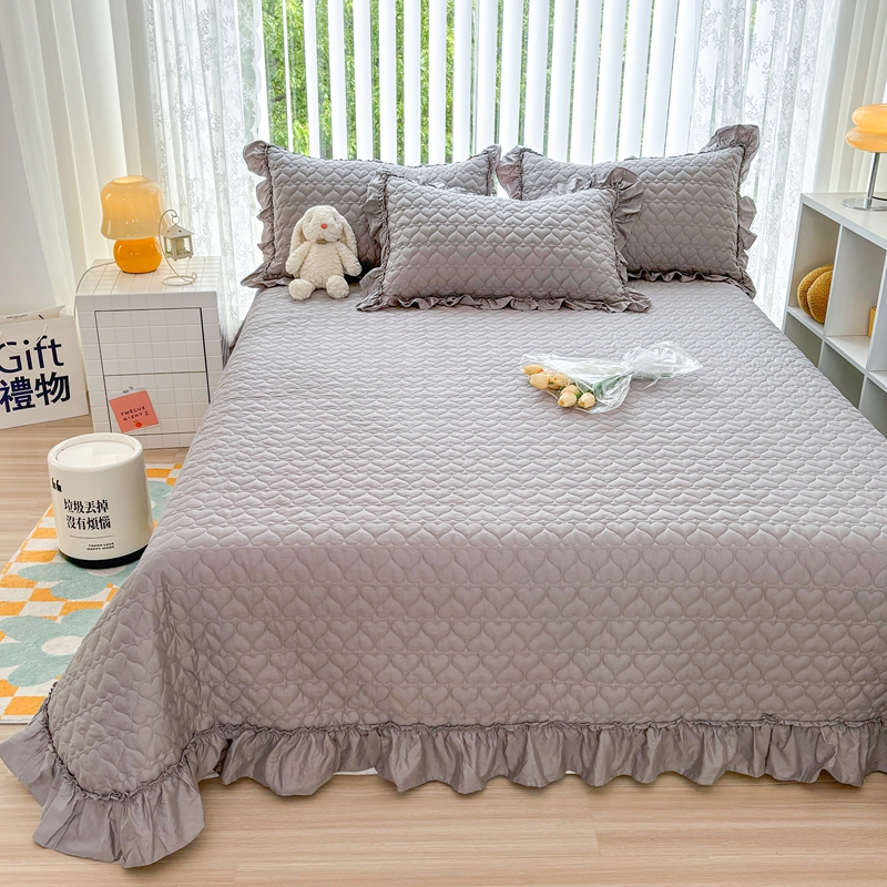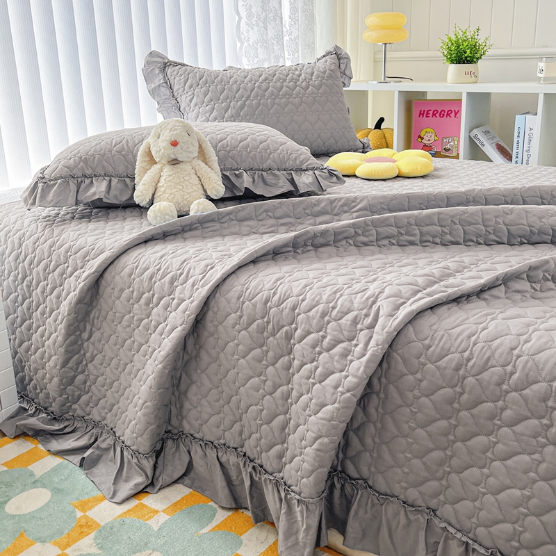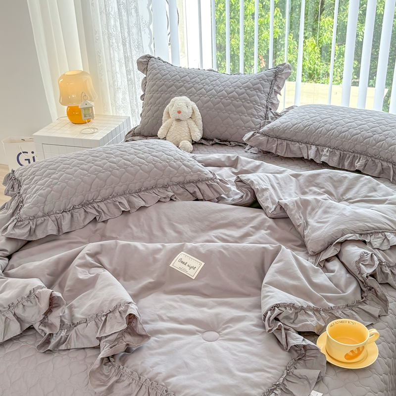 暖居 2024新款250X270韩系纯色纯棉床盖三件套四件套+双面纯棉同款春秋被 夜空灰花束款