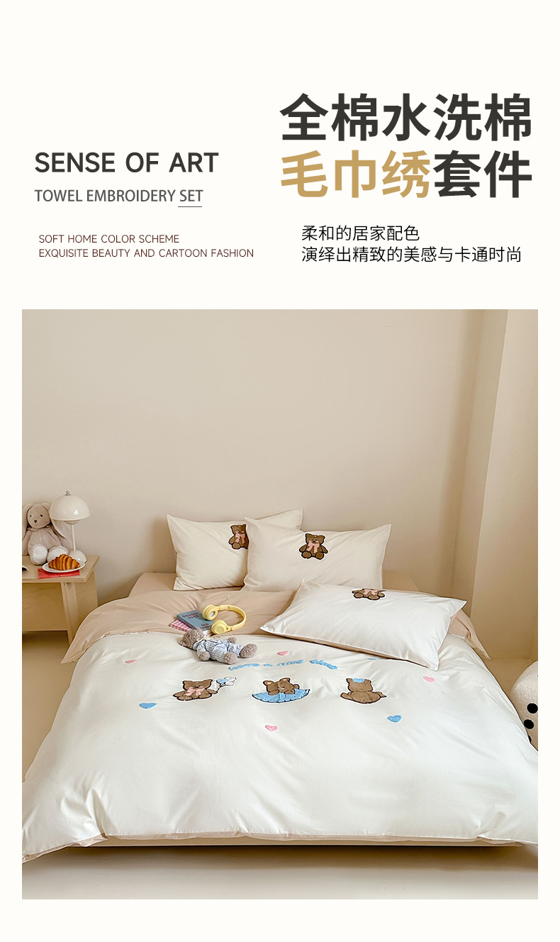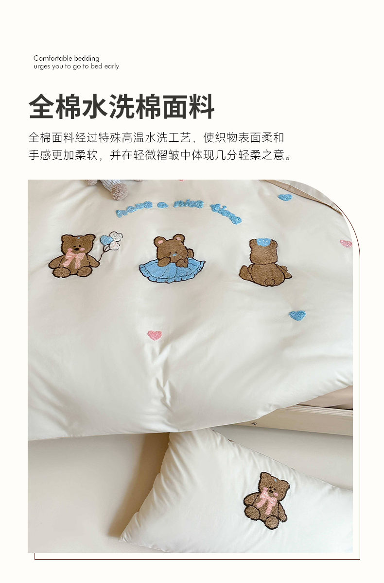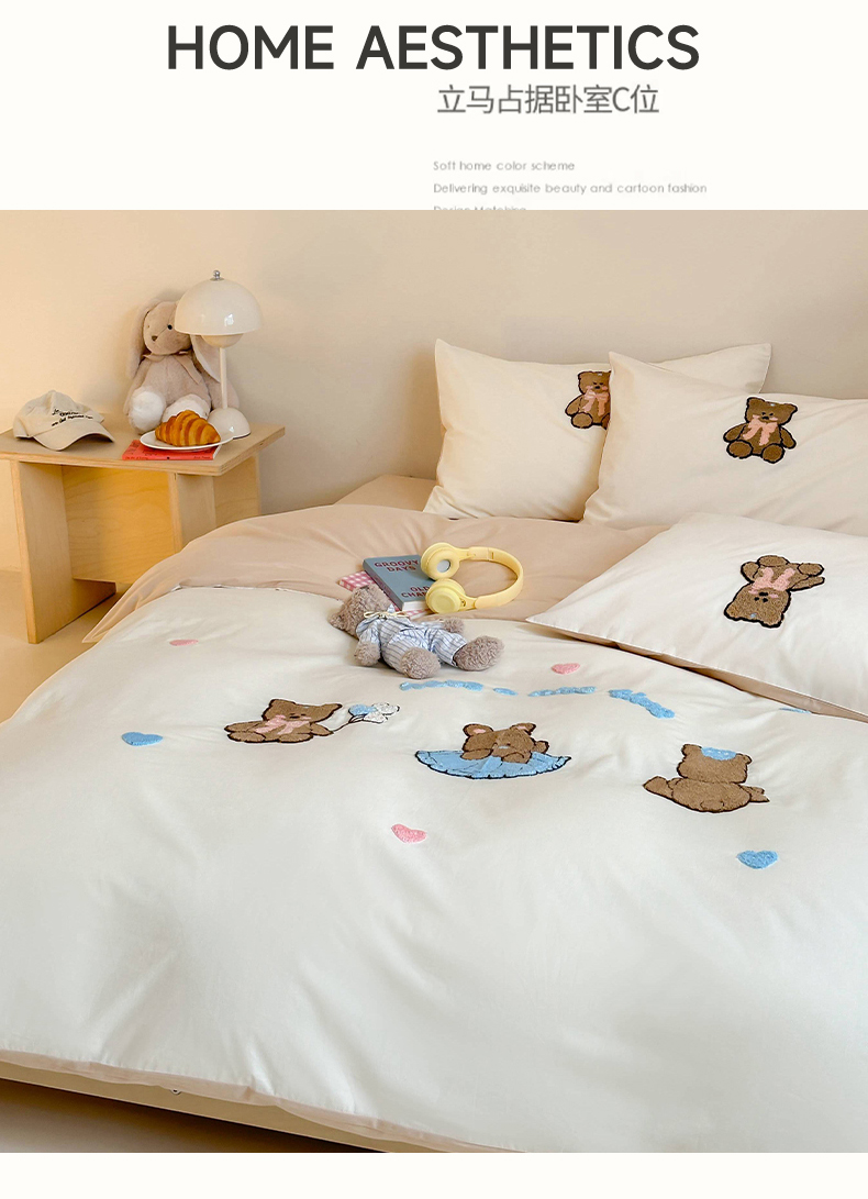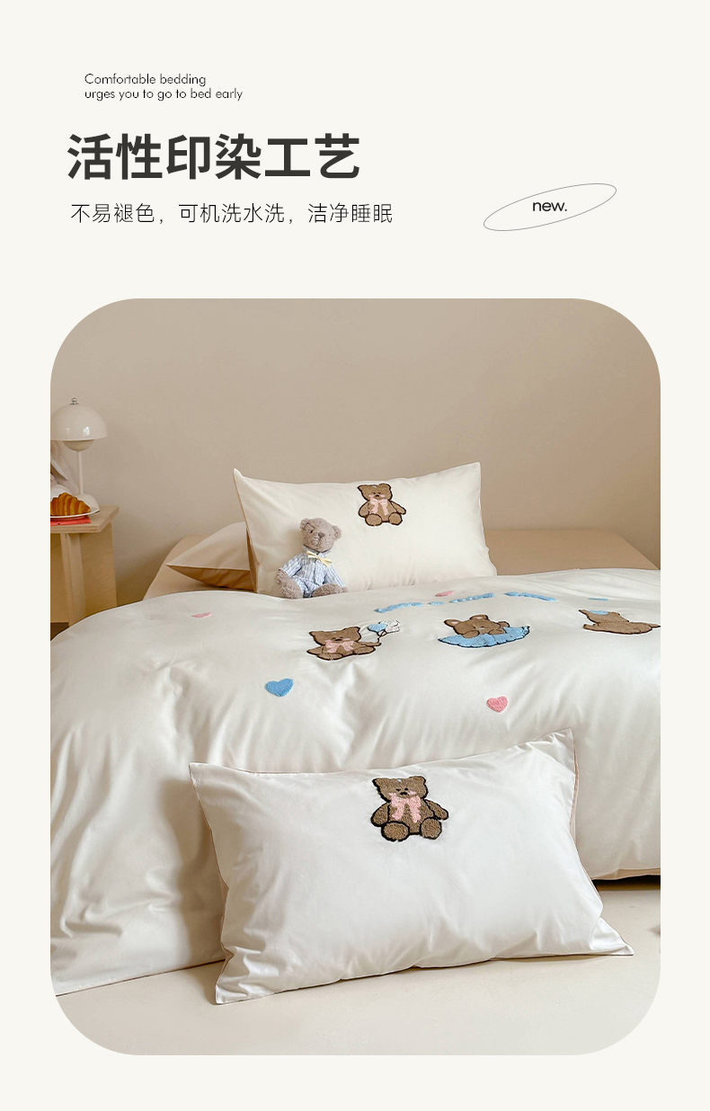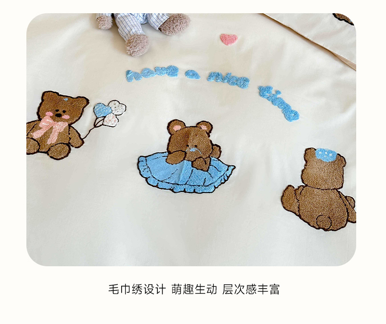 (总)紫桐2025新款长绒棉贴布绣四件套,黄油小熊 海盐蓝,黄油小熊 奶油黄,黄油小熊 芝芝粉