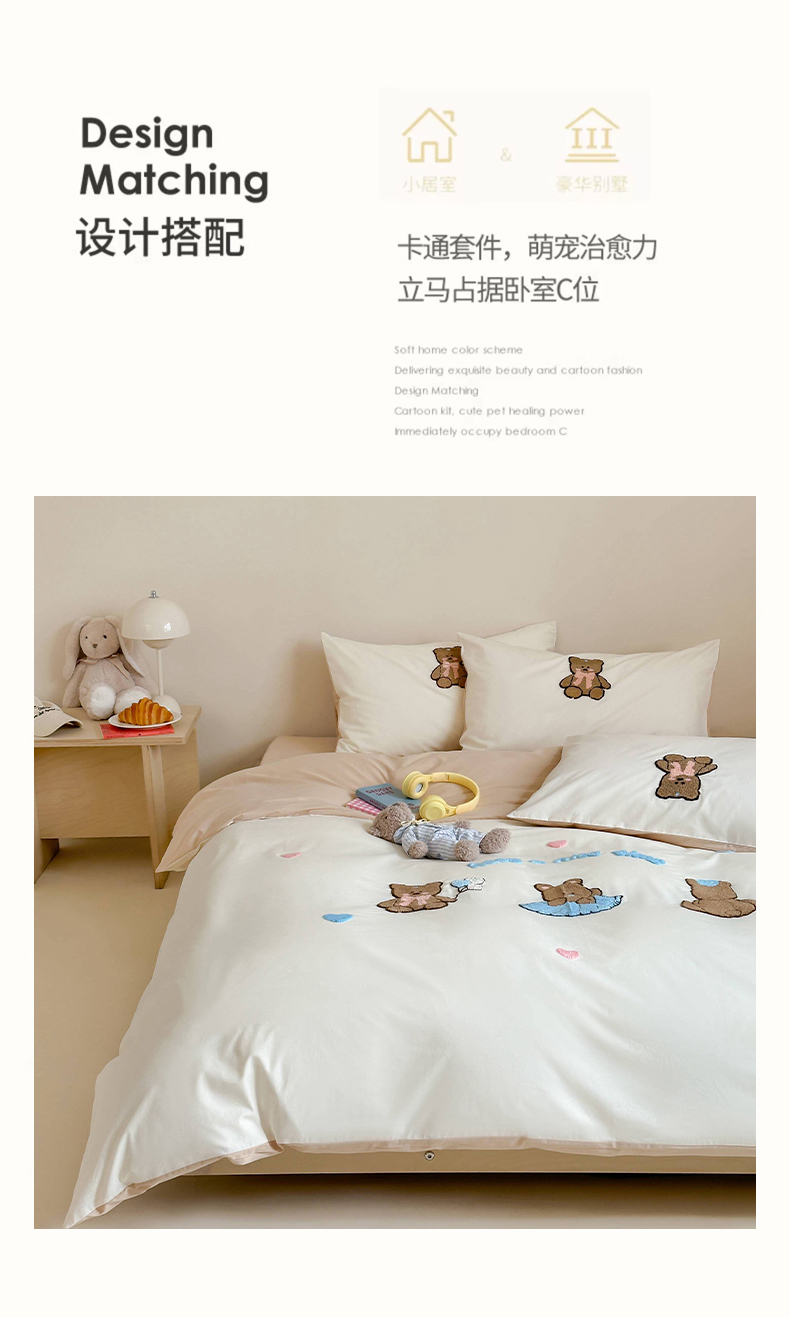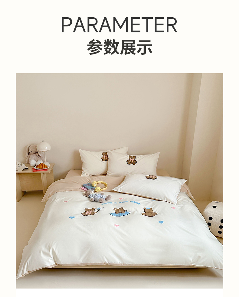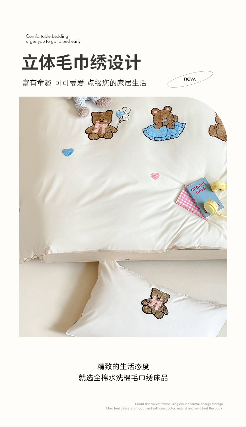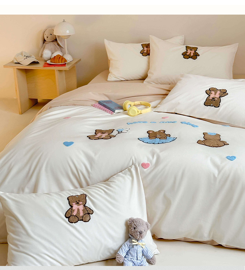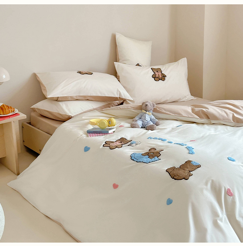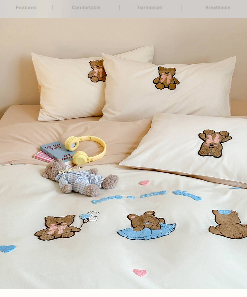 (总)紫桐2025新款长绒棉贴布绣四件套,黄油小熊 海盐蓝,黄油小熊 奶油黄,黄油小熊 芝芝粉