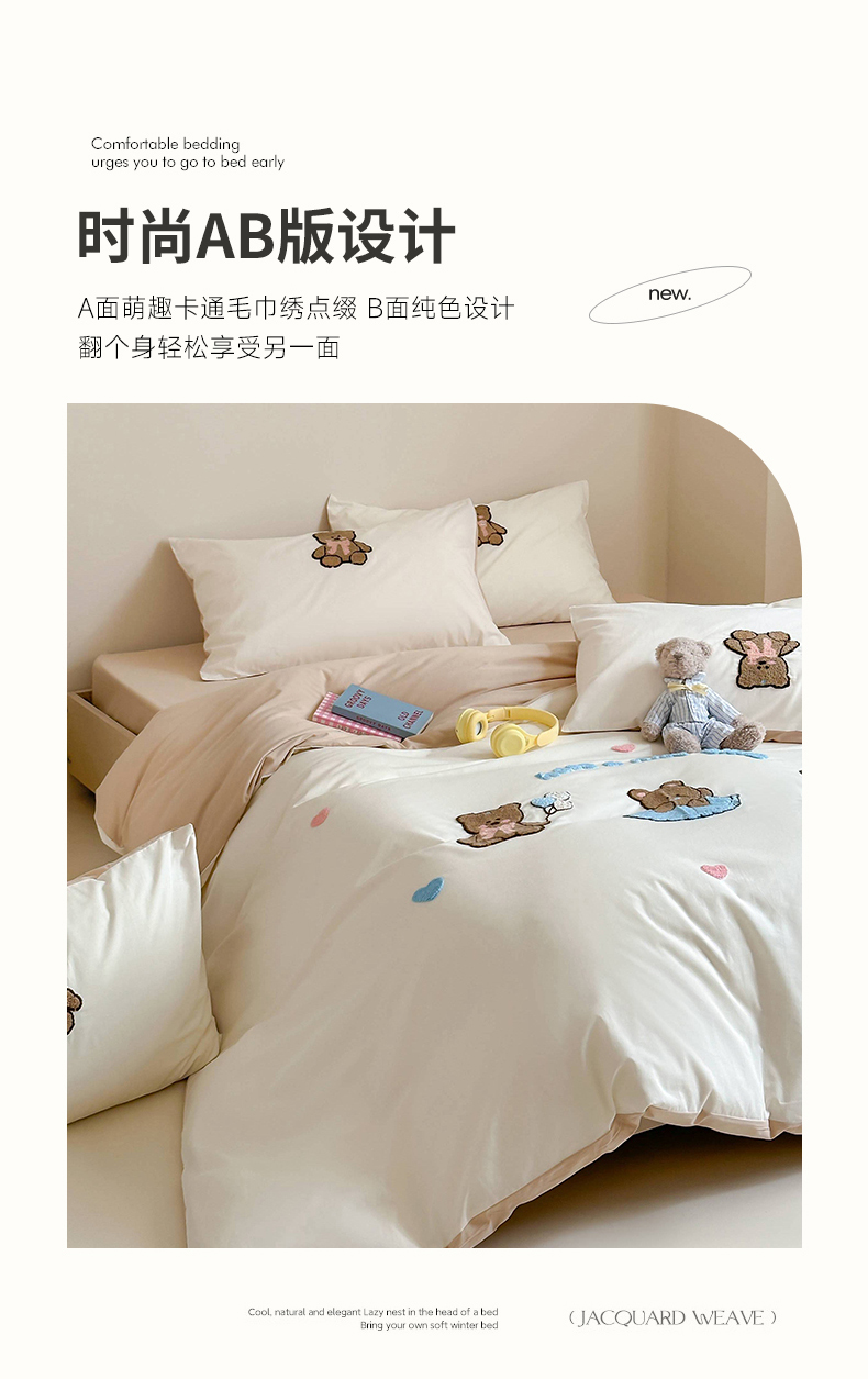 商品名称:紫桐 2025新款全棉水洗棉卡通毛巾绣四件套(控价220/260) 芭蕾熊-米
