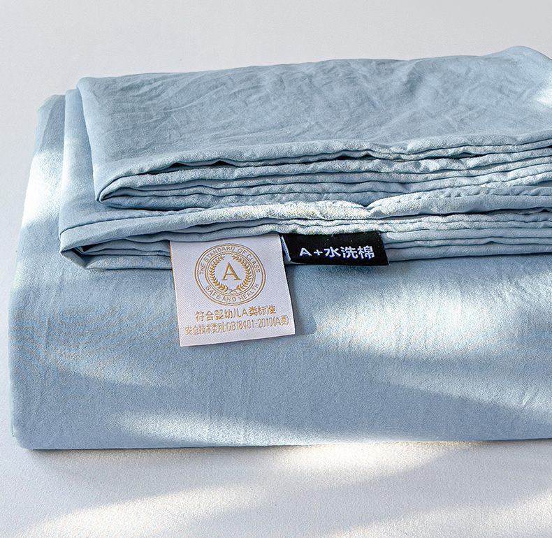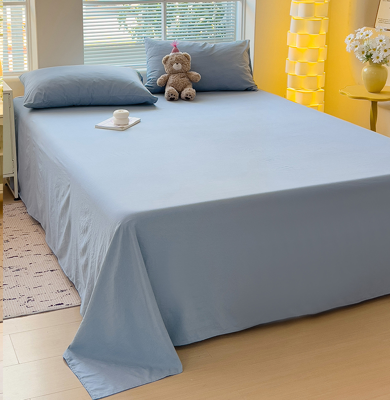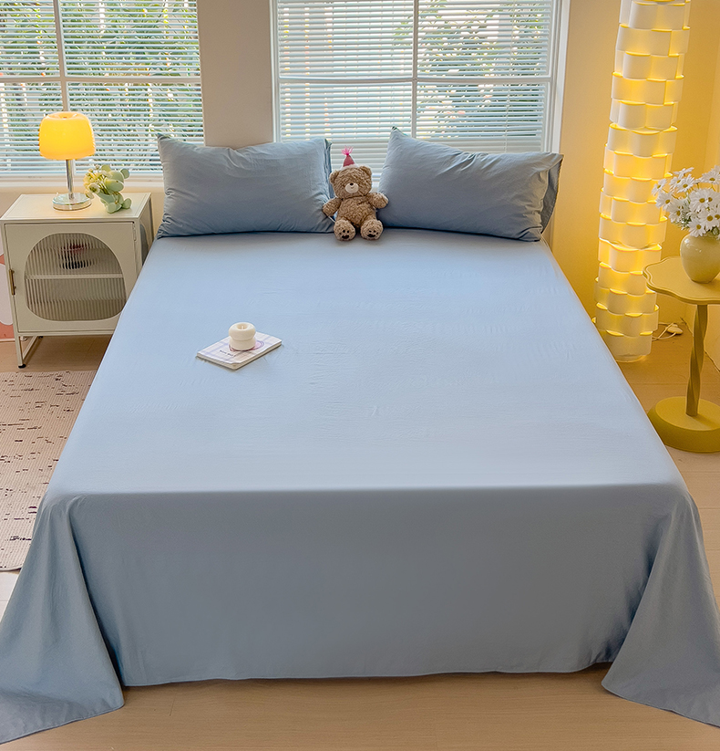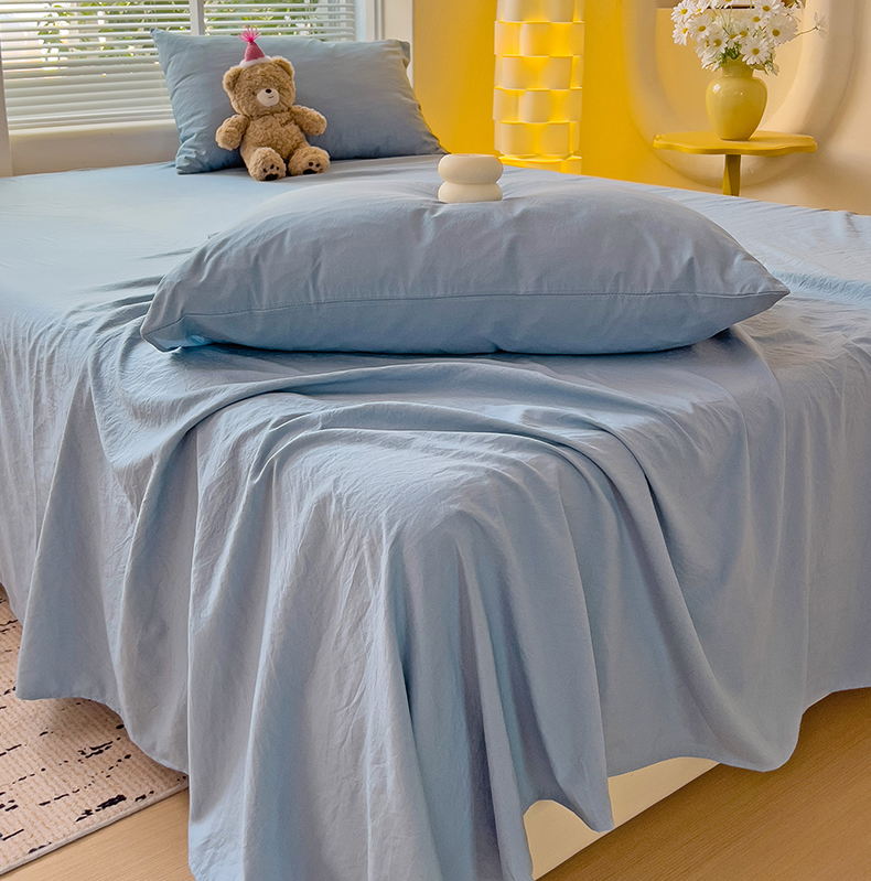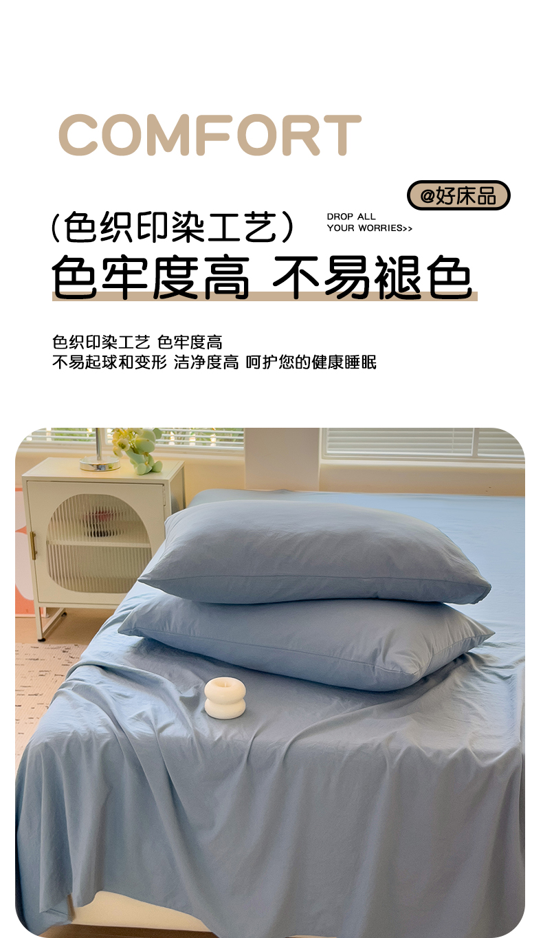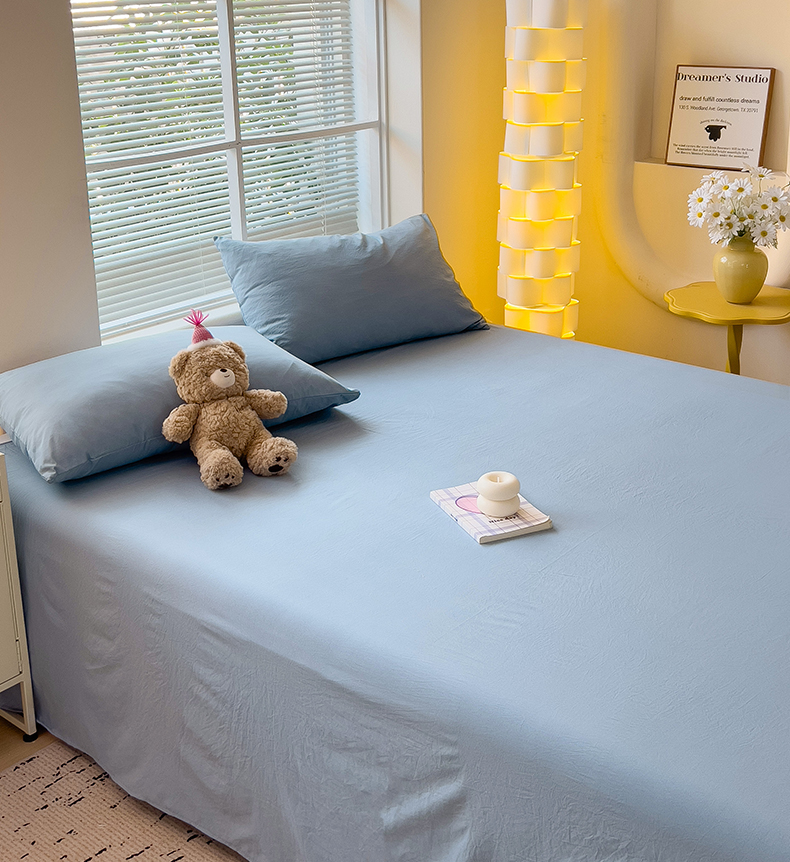 商品名称:优选良品 2025新款母婴级水洗棉床单三件套 水洗棉-奶蓝