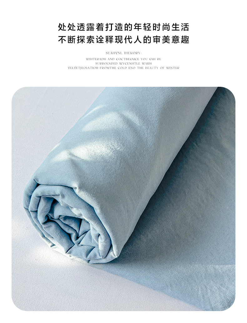 优选良品 2025新款韩版轻奢皱皱纱水洗棉拼色床单床笠四件套三件套-天空蓝,天空蓝