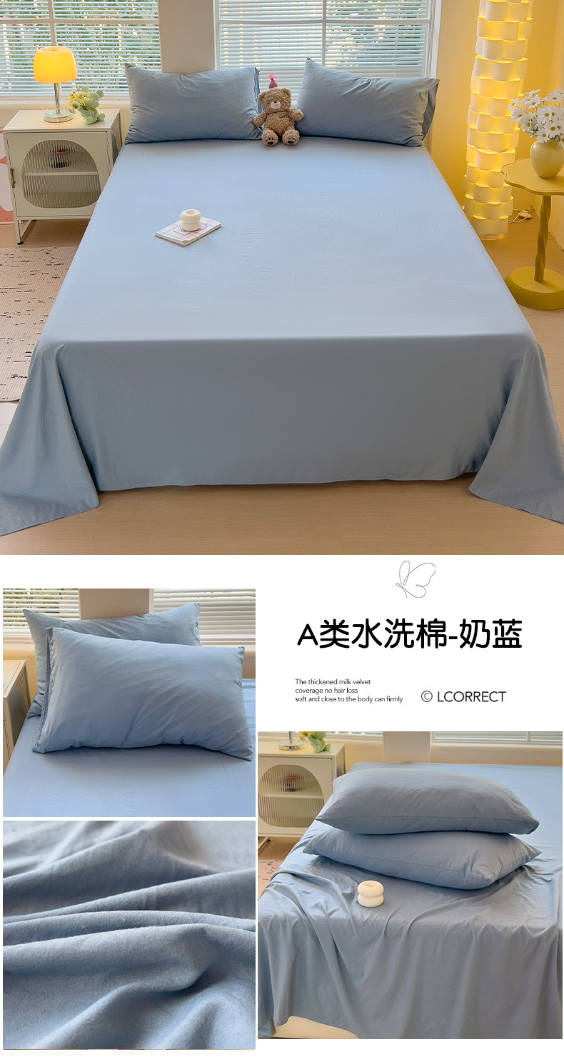 优选良品 2025新款母婴级水洗棉床单三件套 水洗棉-奶蓝