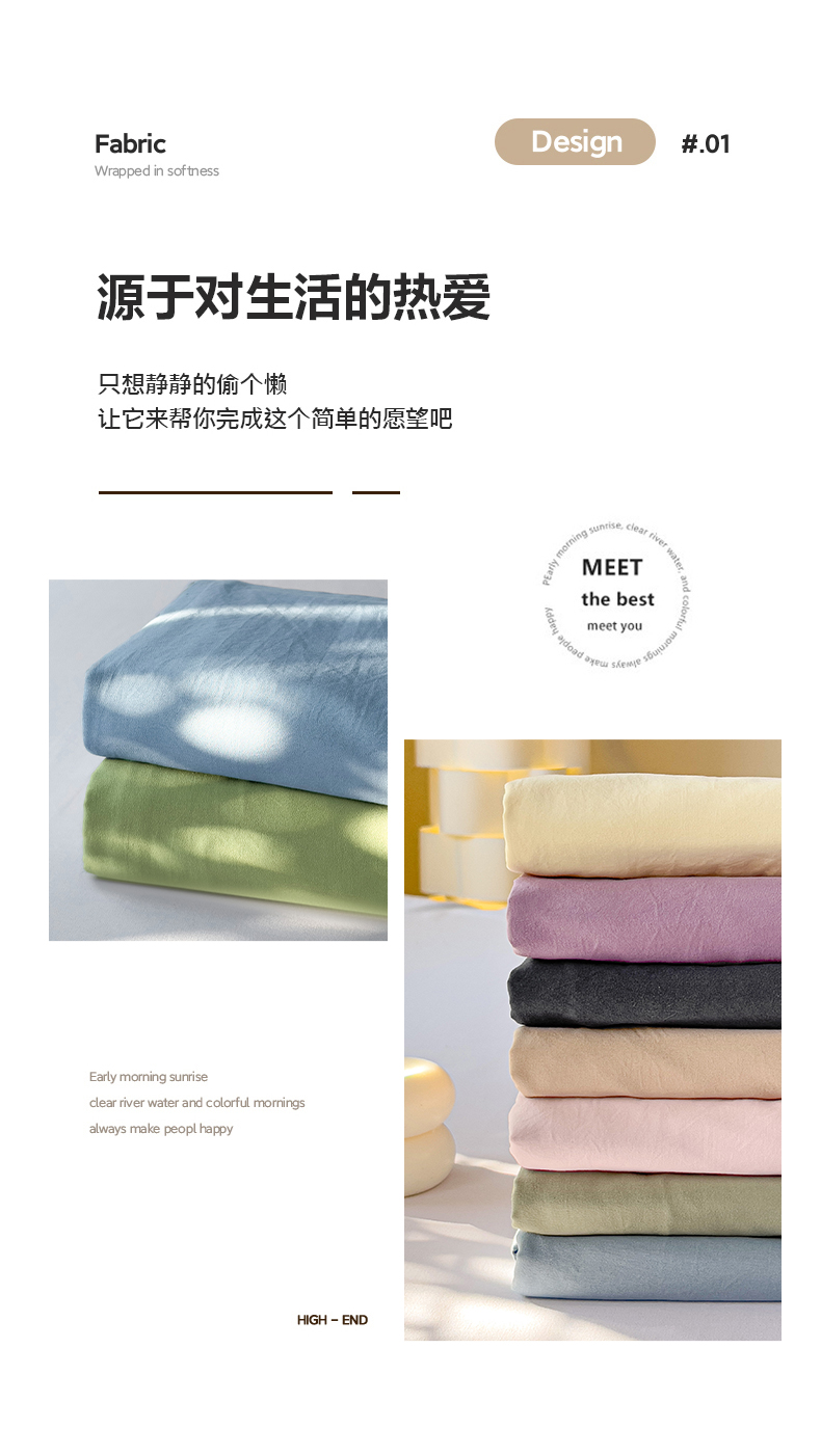 优选良品 2025新款韩版轻奢皱皱纱水洗棉拼色床单床笠四件套三件套-芋泥紫,芋泥紫