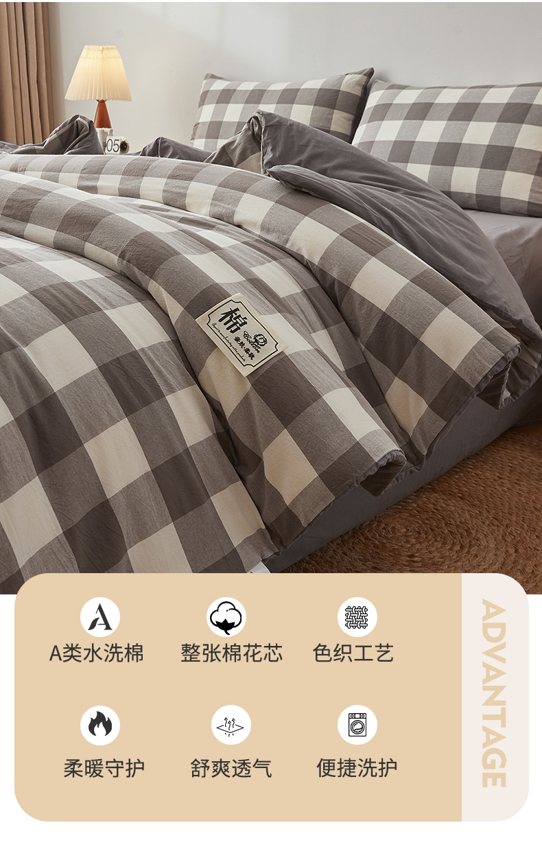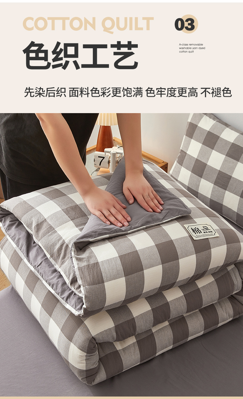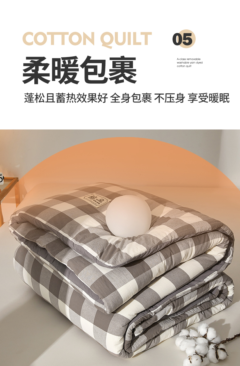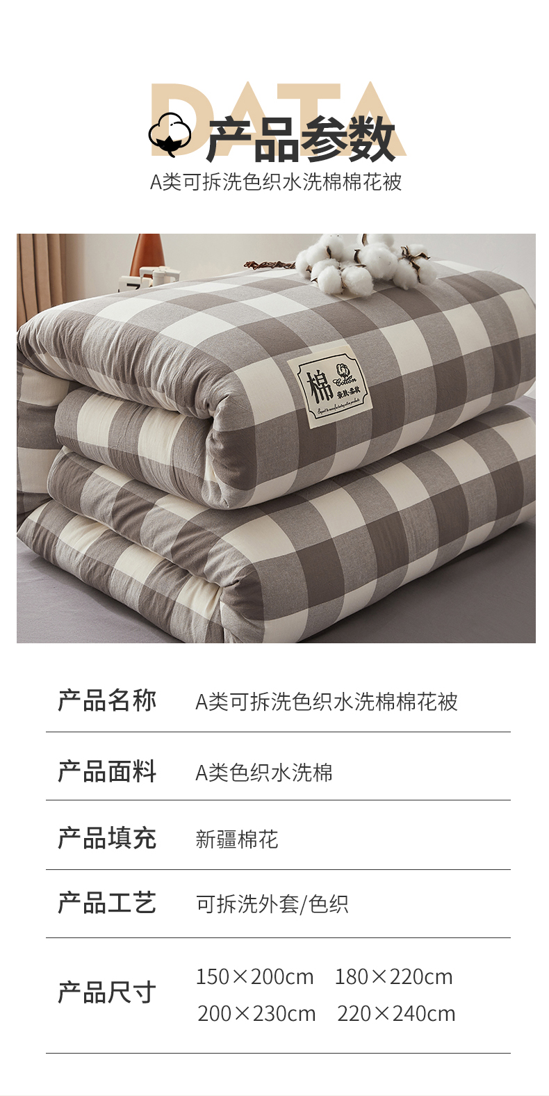 • 91家纺网 家纺一手货源 找家纺 晓时候 2025新款无印风亲肤水洗棉新疆棉花被可拆洗被子被芯冬被春秋被 灰中格