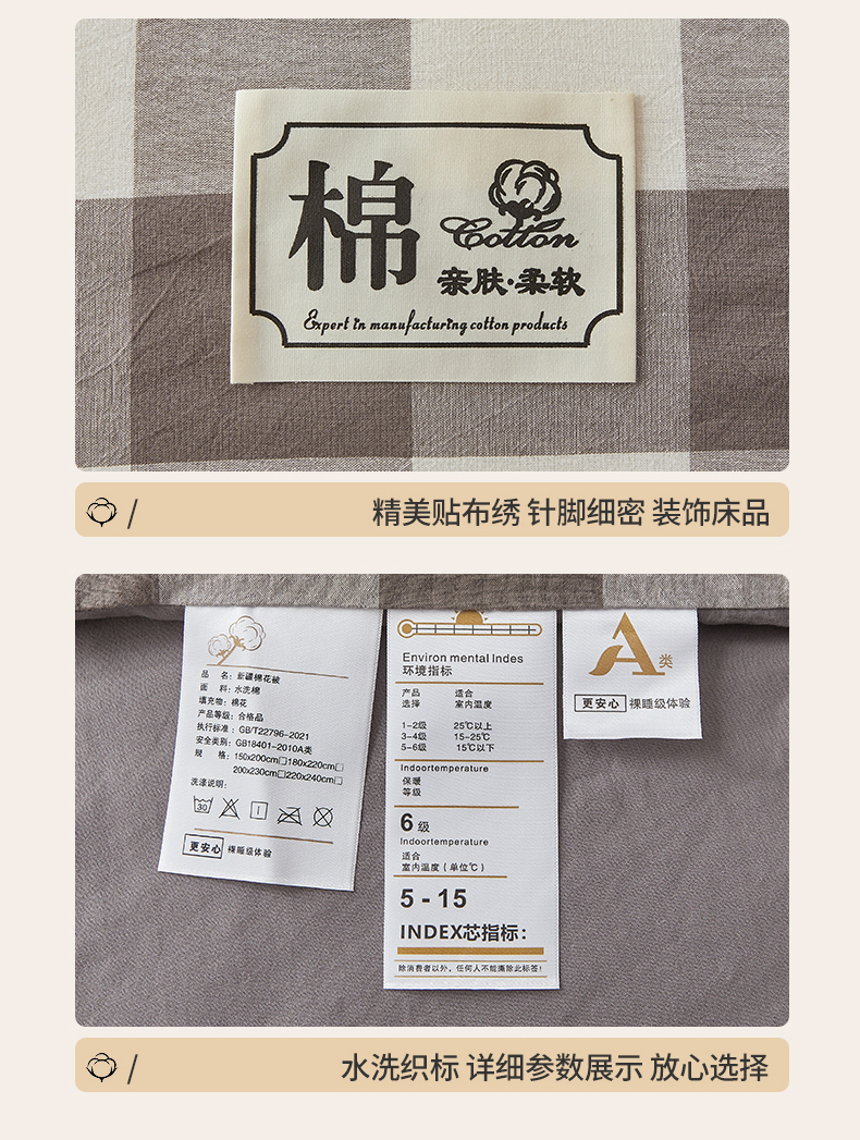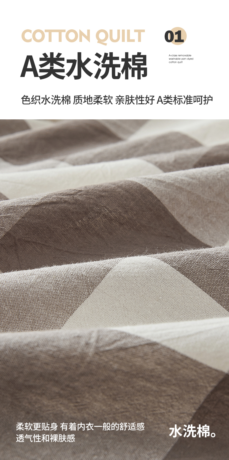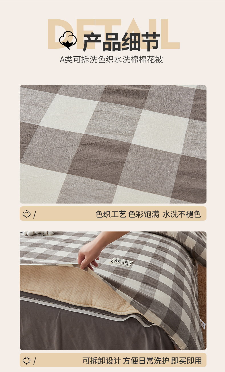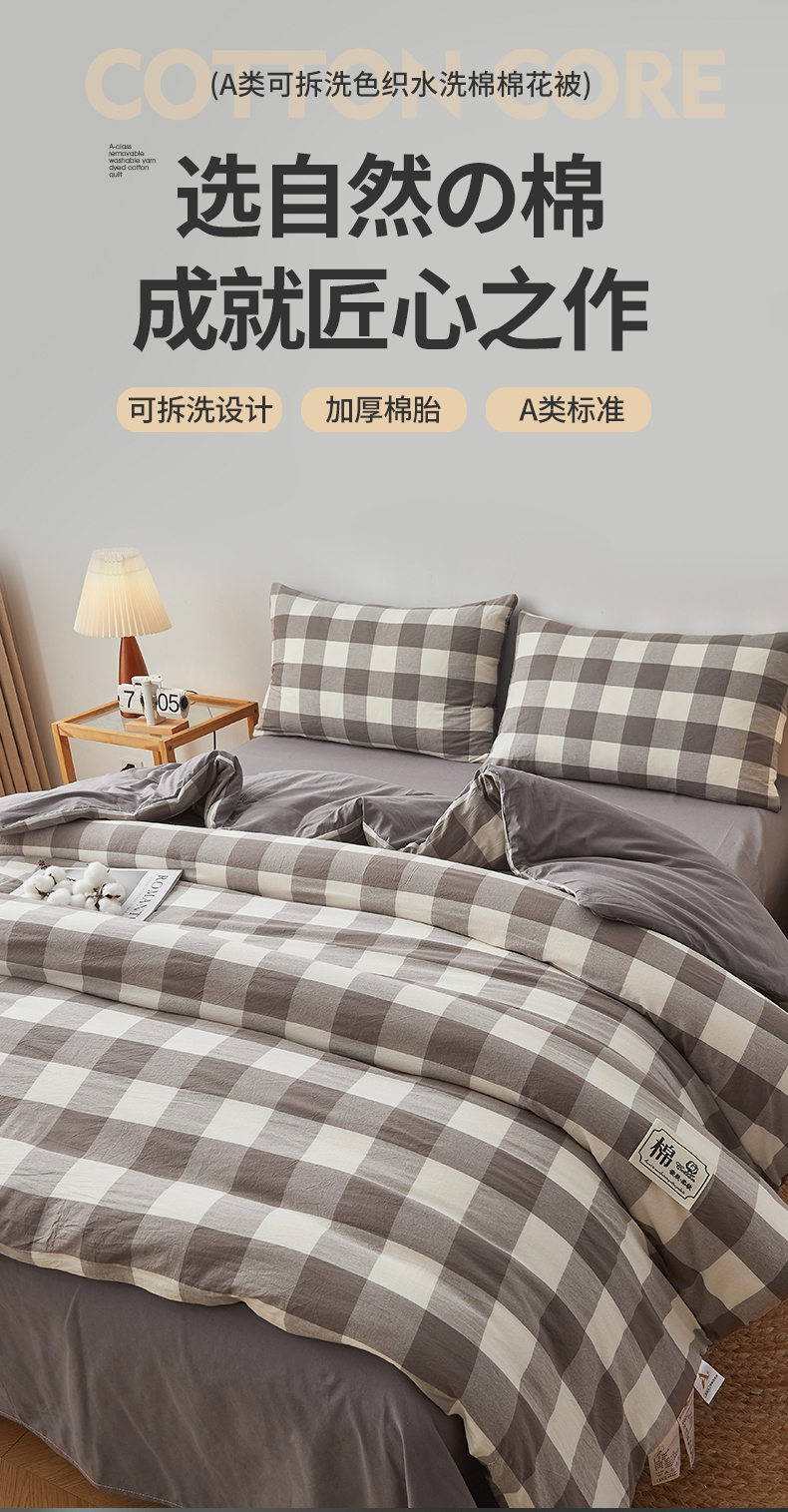• 91家纺网 家纺一手货源 找家纺 晓时候 2025新款无印风亲肤水洗棉新疆棉花被可拆洗被子被芯冬被春秋被 灰中格