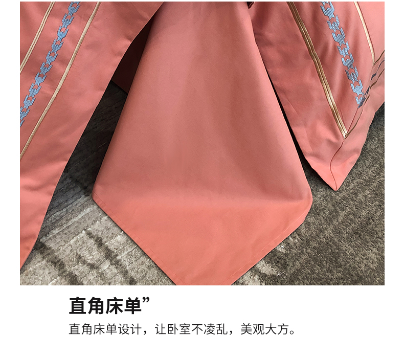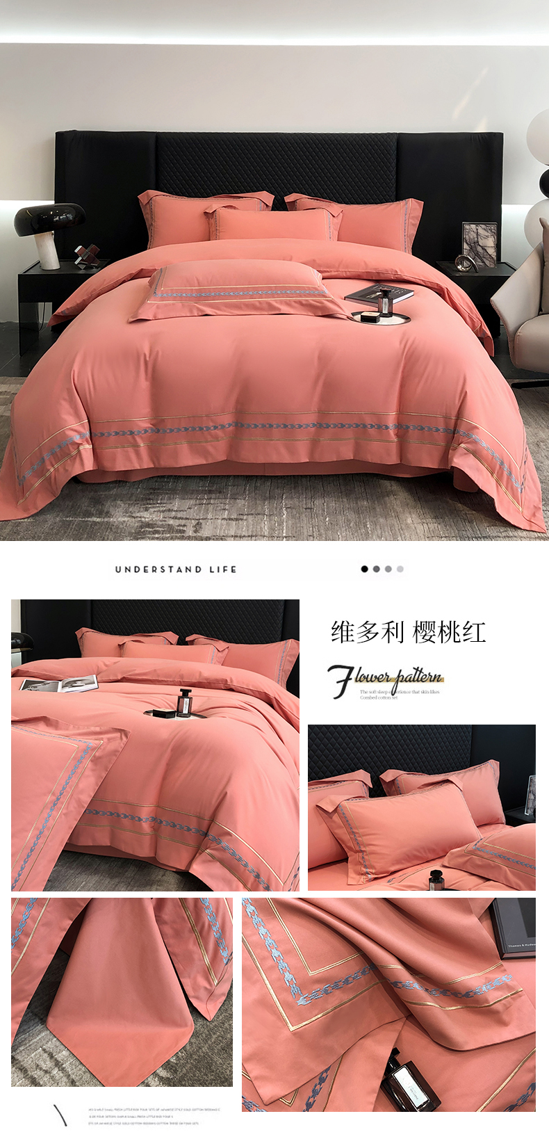 商品名称:家居1号家纺 2024新款加厚全棉磨毛宽边刺绣拼角四件套-维多利 维多利 樱桃红