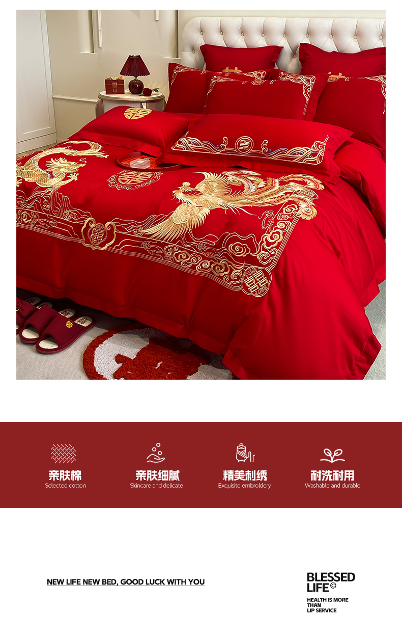 商品名称:欧乐蒂 2025新款亲肤棉婚庆刺绣四件套系列 龙腾凤跃