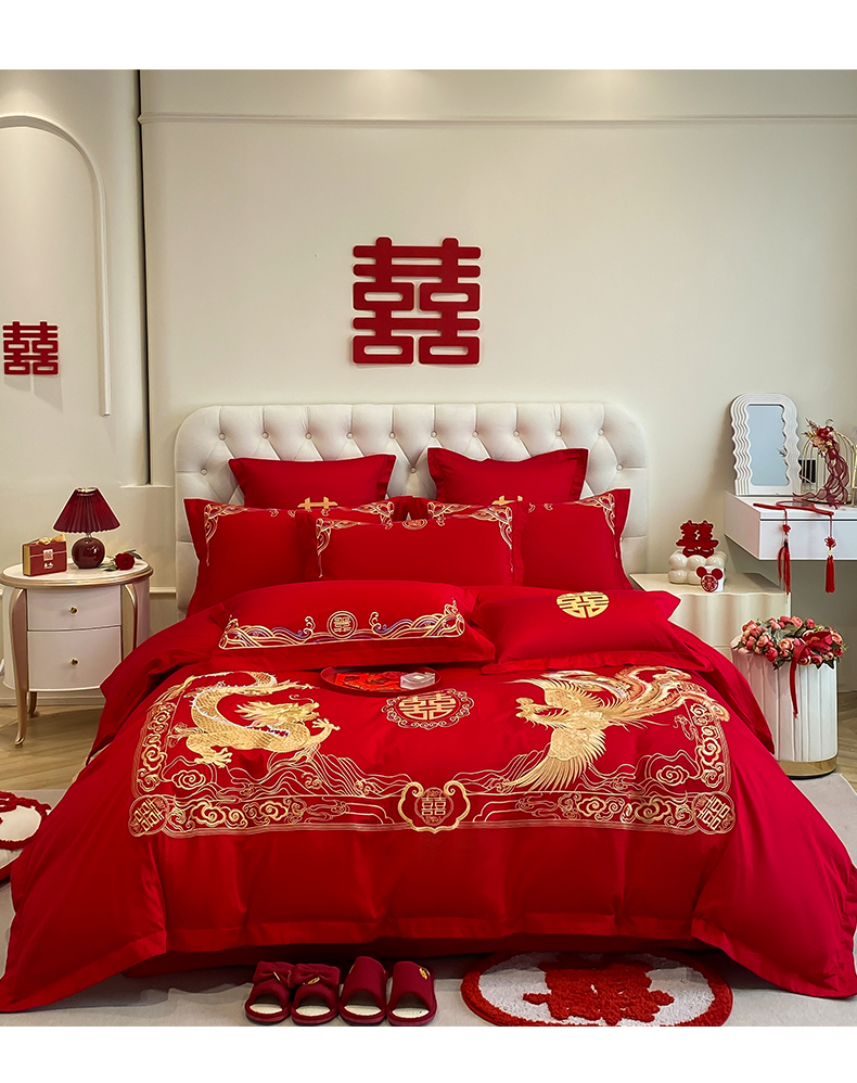 欧乐蒂 2025新款亲肤棉婚庆刺绣四件套系列 龙腾凤跃