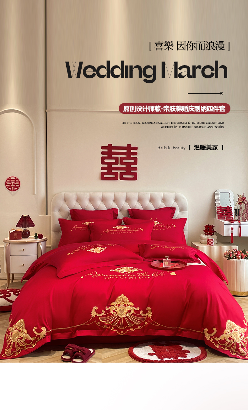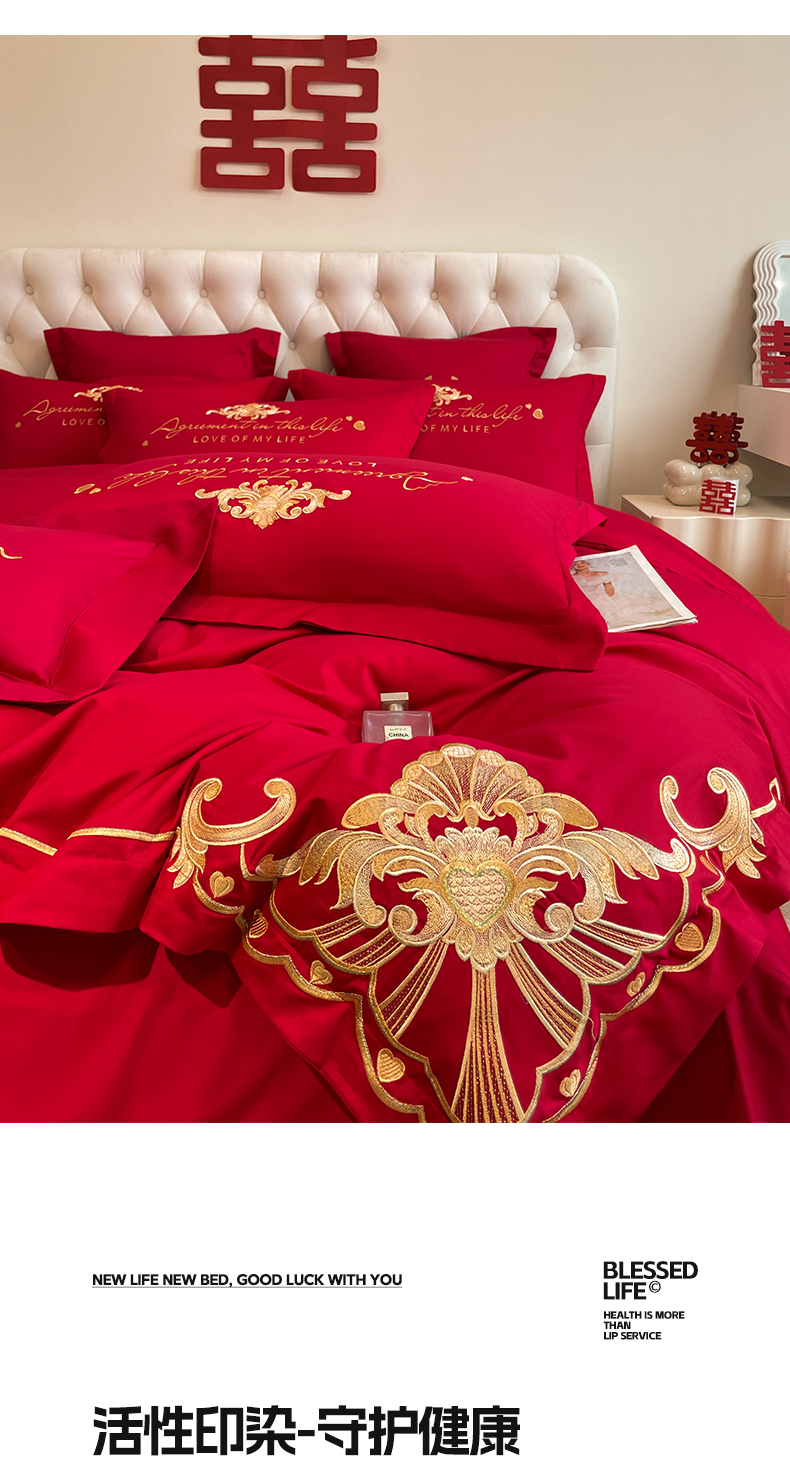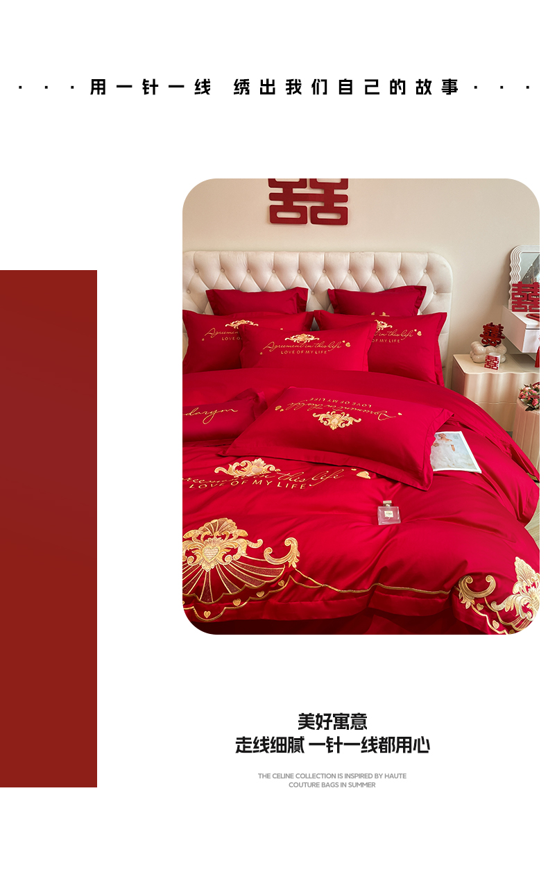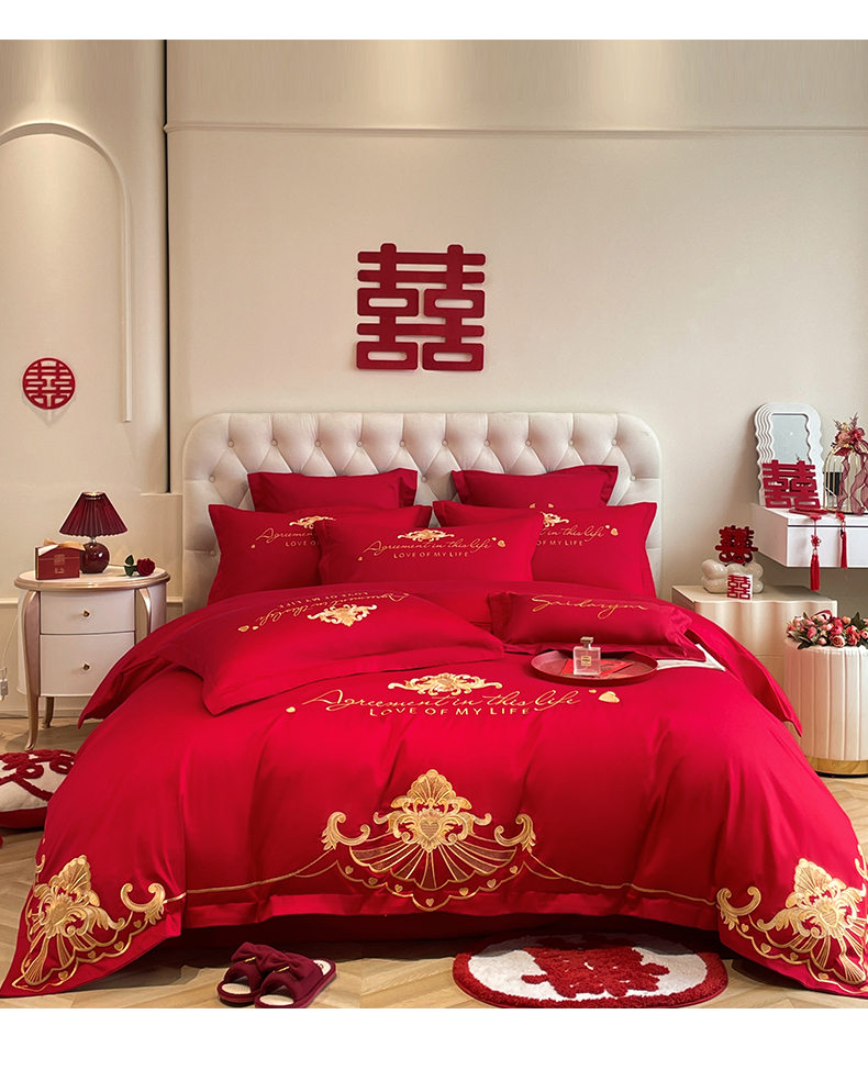 (总)欧乐蒂 2025新款全棉刺绣婚庆四件套,佳偶天成,龙凤和美,龙姿凤彩,玫瑰恋人,倾城之恋,双囍临门,甜蜜爱情,囍结良缘