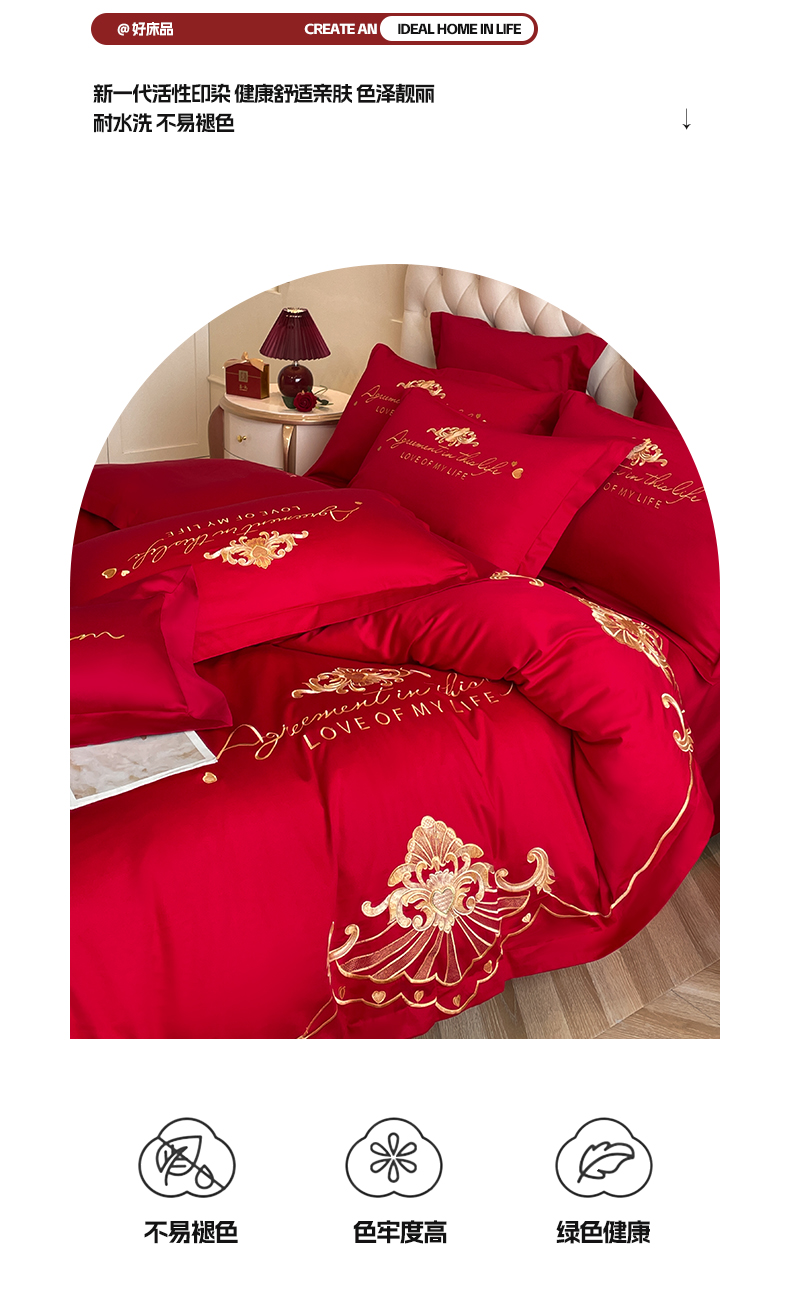 (总)欧乐蒂 2025新款婚庆款牛奶绒刺绣系列四件套-爱相随,爱相随-喜红,爱相随-金