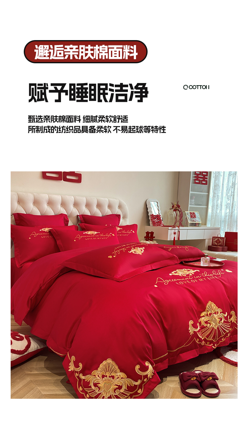 商品名称:欧乐蒂 2025新款亲肤棉婚庆刺绣四件套系列 锦绣佳缘