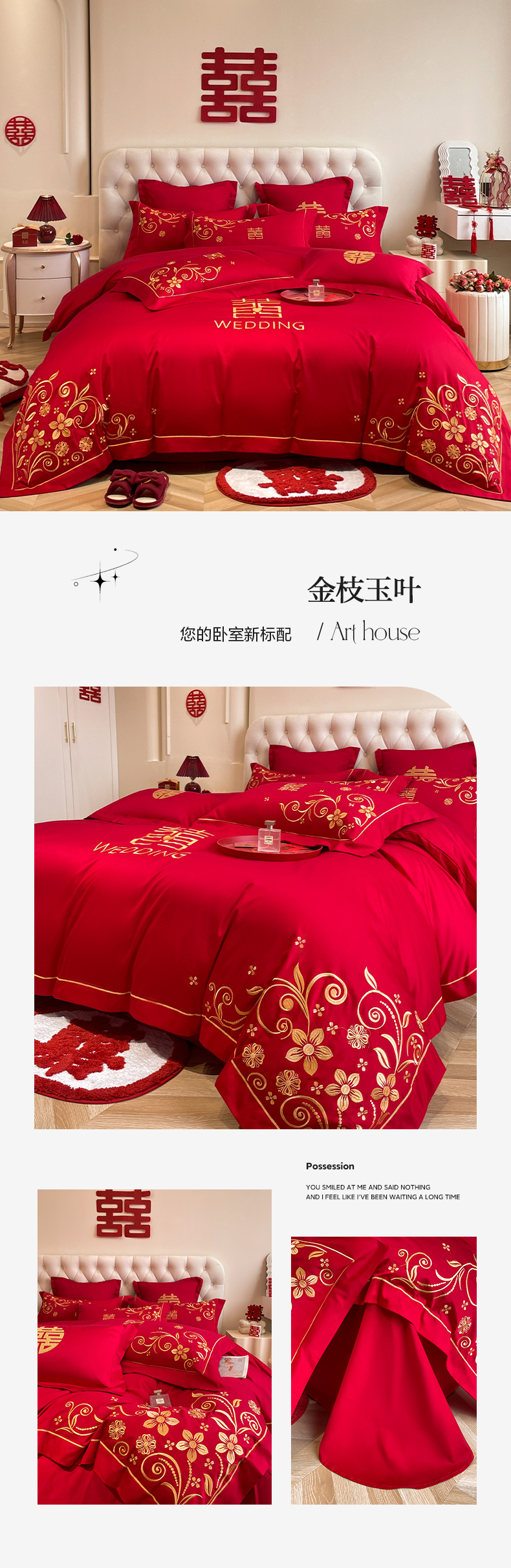 (总)欧乐蒂 2025新款设计师原创亲肤棉婚庆四件套,云喜东方,双喜临门,喜乐,喜事连连,爱恋,玫瑰爱恋,花开富贵,金枝玉叶,锦绣佳缘,龙姿风采