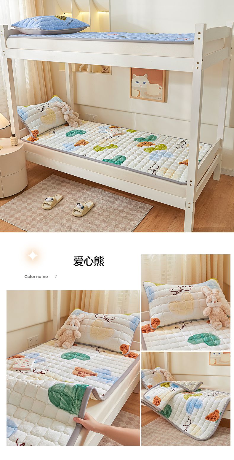 (总)卡伦家纺 2025新款A类牛奶绒夹棉加厚床垫单人双人床垫保护垫,爱的印记,爱心熊,安妮宝贝,宝石蓝,缤纷小可爱,草莓之恋,呆萌恐龙,高级灰,高雅紫,红豆沙,花间蘑力,花开一夏,花之谷,金叶飘香,开心乐园,梦想创造家,抹茶绿,南瓜灰灰,南瓜派,青春曲调,轻羽飞扬,甜蜜爱心,甜心小熊,香槟金,心相印,星幻恐龙,星梦露,熊熊世界,樱桃花语,云端漫步