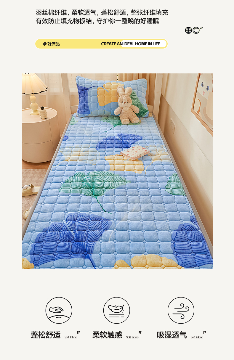 卡伦家纺 2025新款A类牛奶绒夹棉加厚床垫学生宿舍单人床垫 金叶飘香