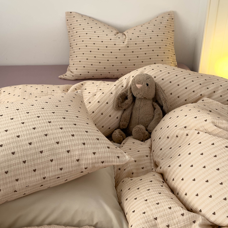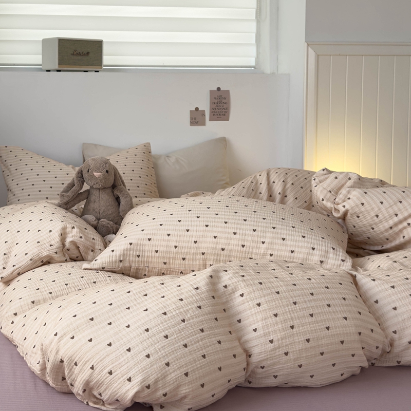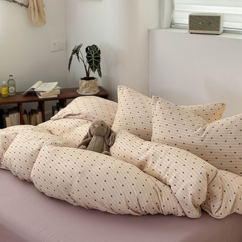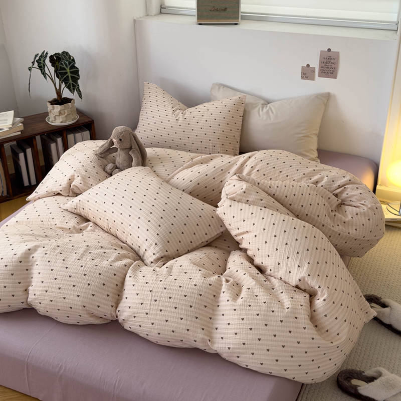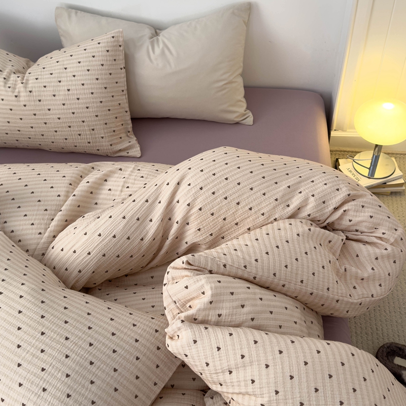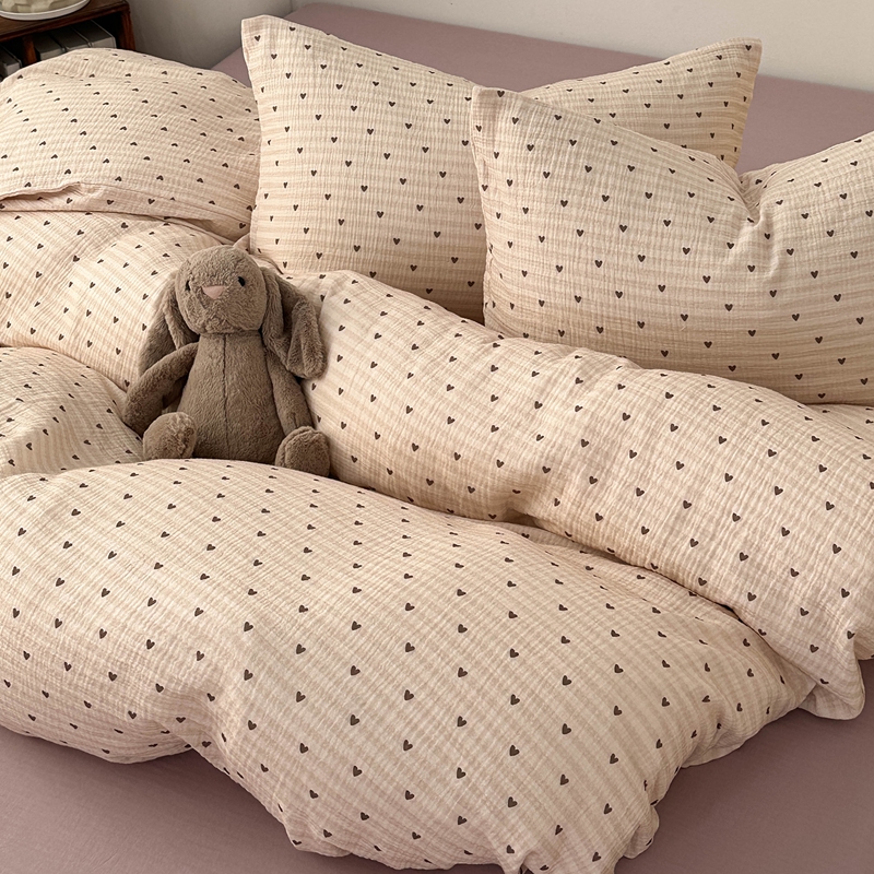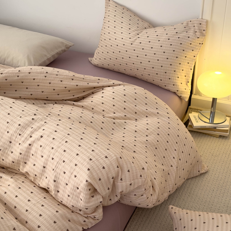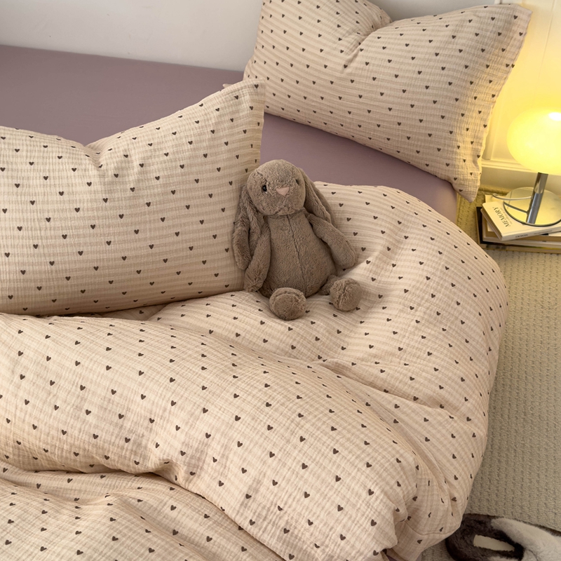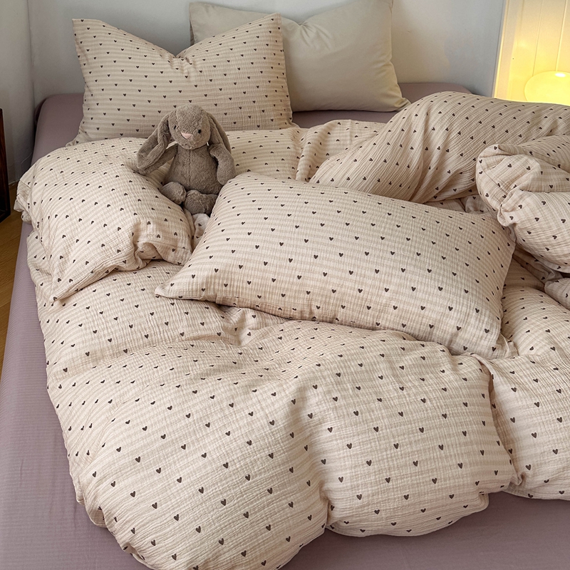 洋铭区(原狠狠爱) 2024新款皱皱纱四件套 卡其爱心