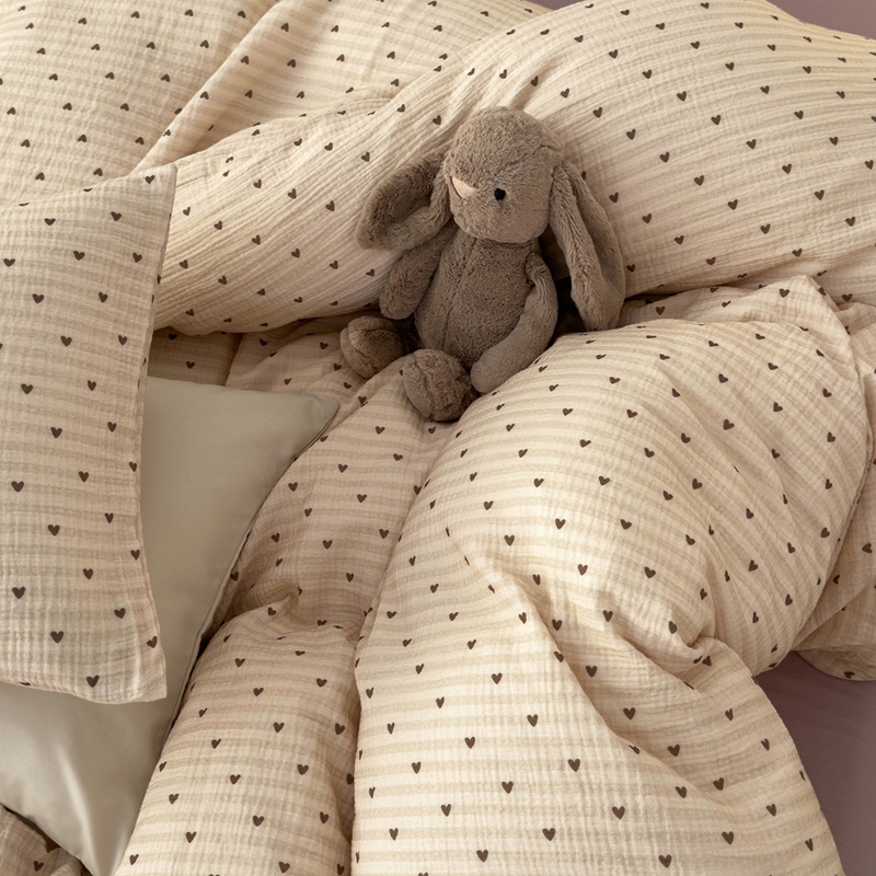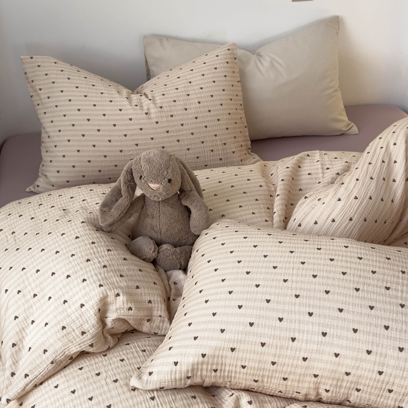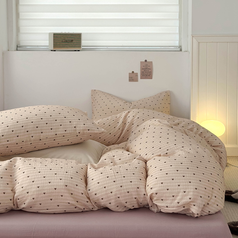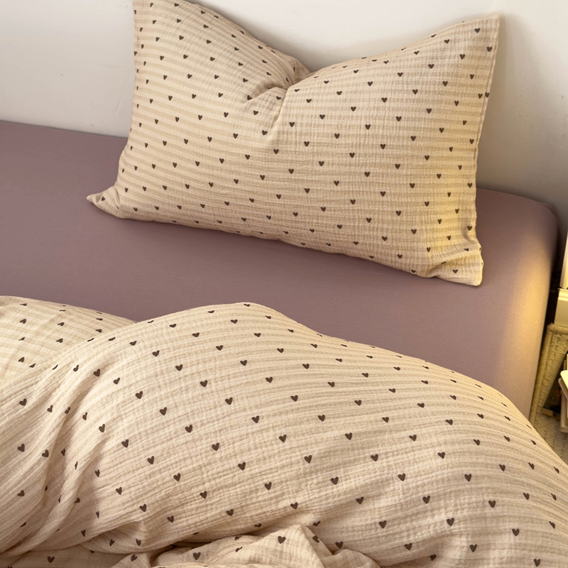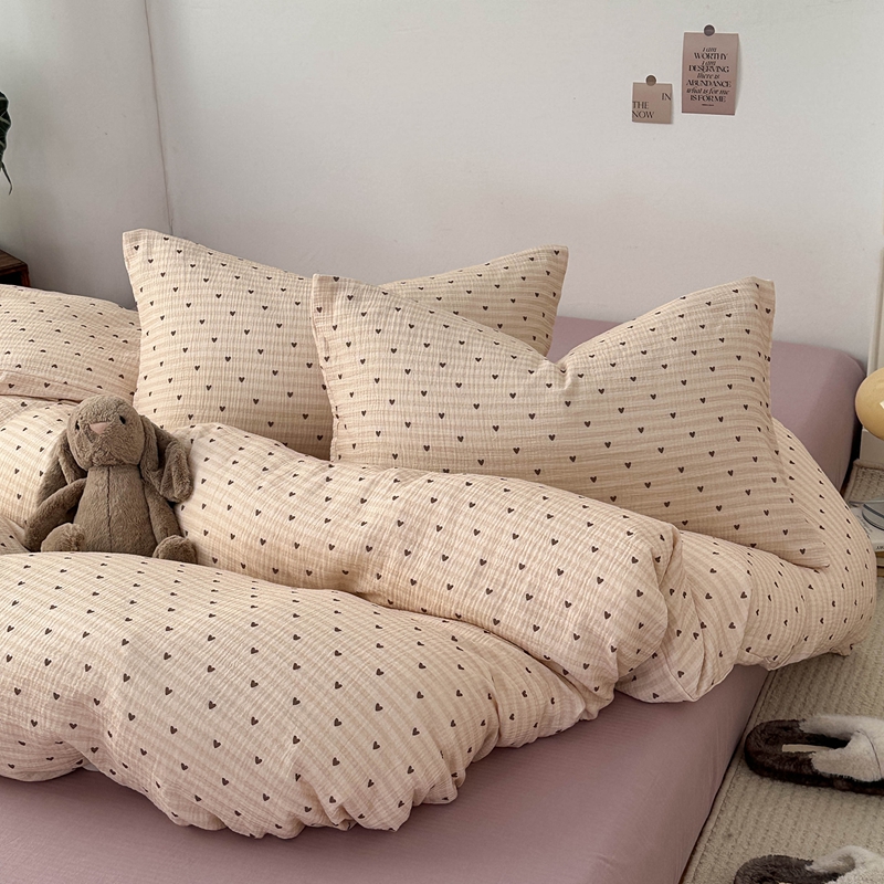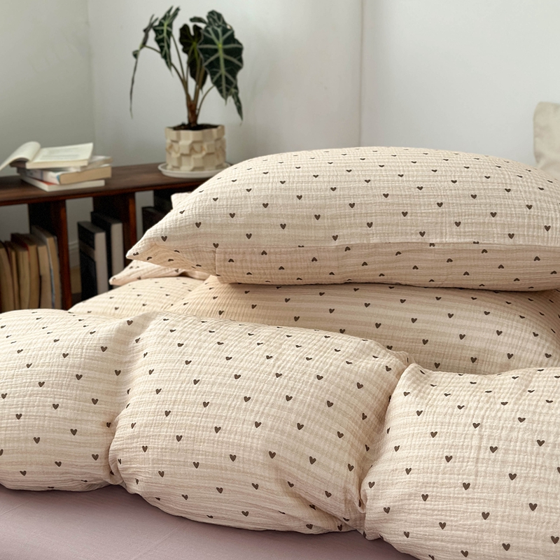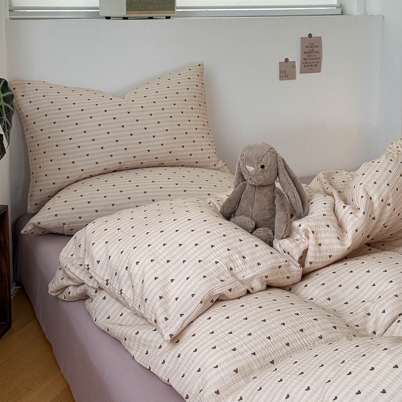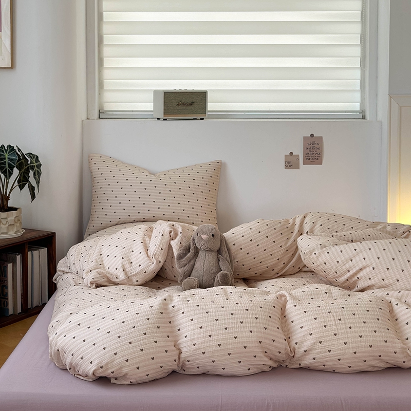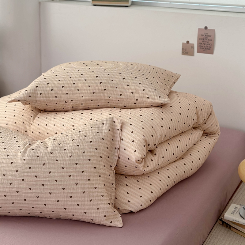 洋铭区(原狠狠爱) 2024新款皱皱纱四件套 卡其爱心