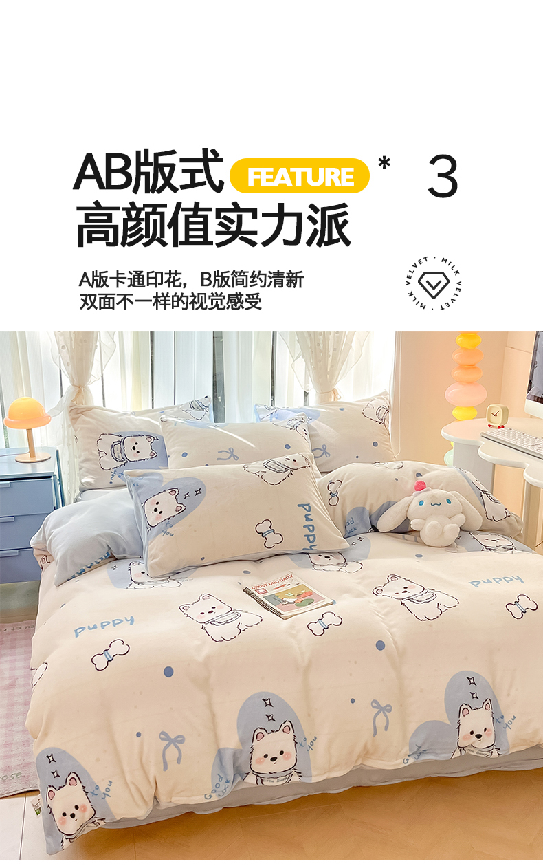 (总)桃子家居 2026新款A类数码印花混搭冬季新年限定猫咪小马加厚牛奶绒四件套,绒-粉色费尔岛小狗,绒-梦幻小马粉,绒-梦幻小马蓝红,绒-樱桃猫猫红,绒-樱桃猫猫咖,绒-棕糖木马