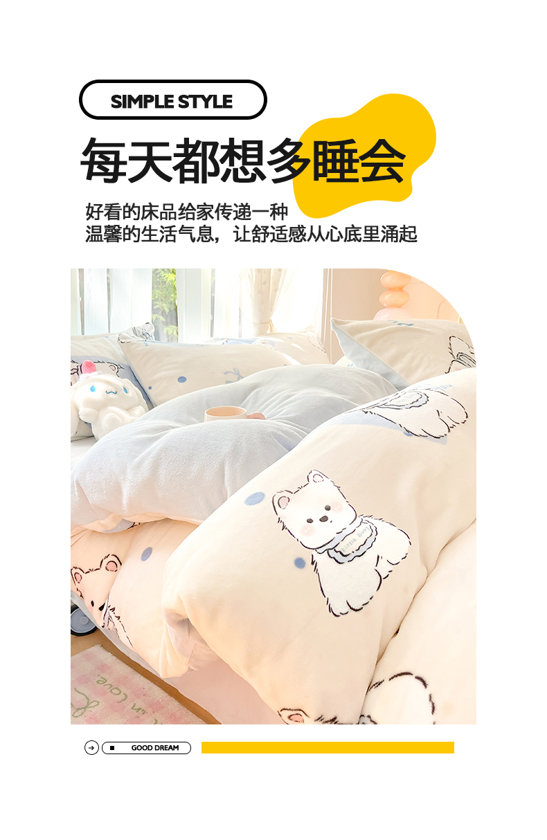 商品名称:(总)桃子家居 2024新款ins小清新花卉少女卡通跑量牛奶绒系列四件套