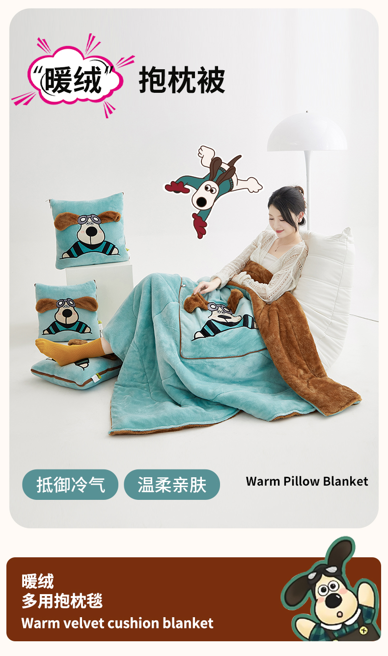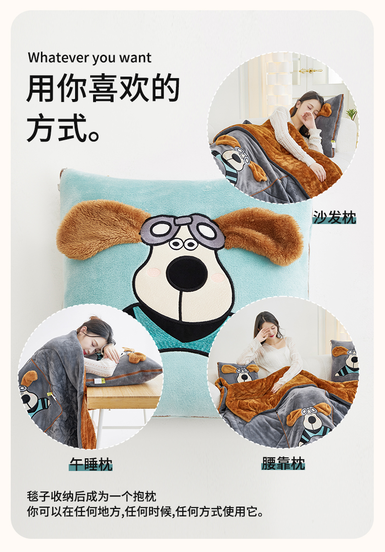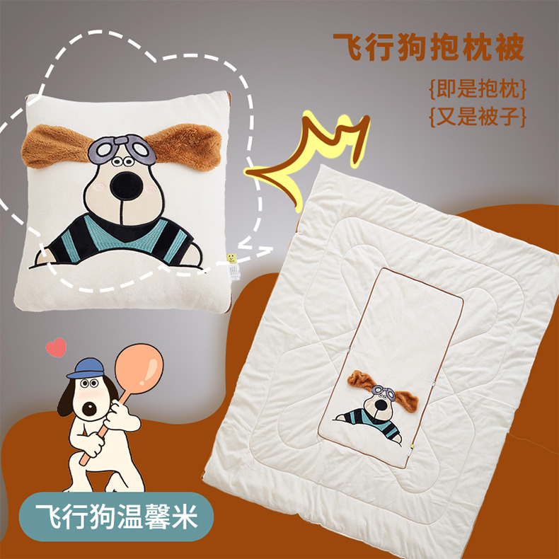 商品名称:古本家居 2024新款飞行狗贴布立体卡通刺绣抱枕被 飞行狗暖粉色