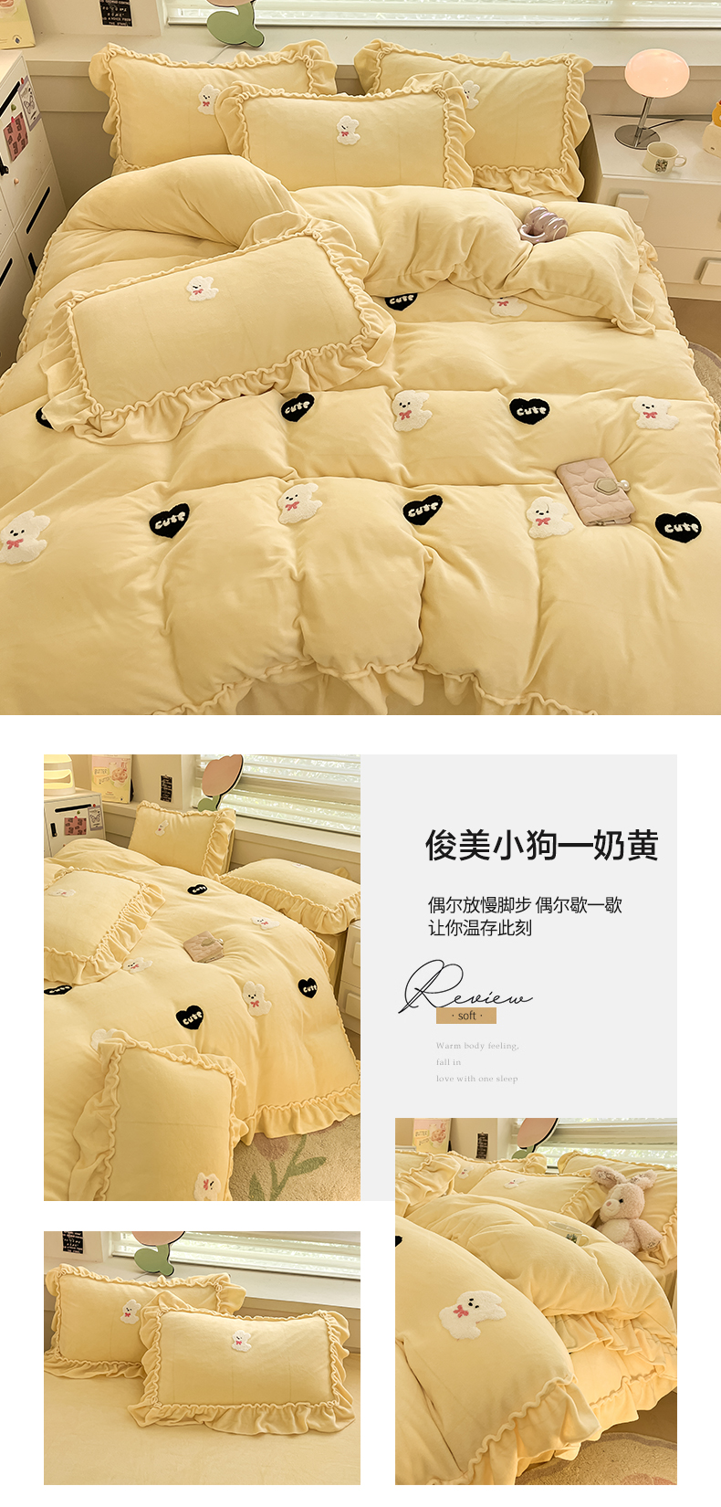 商品名称:亨通家纺 2024新款高克重法式牛奶绒四件套系列-可爱风 可爱风-紫