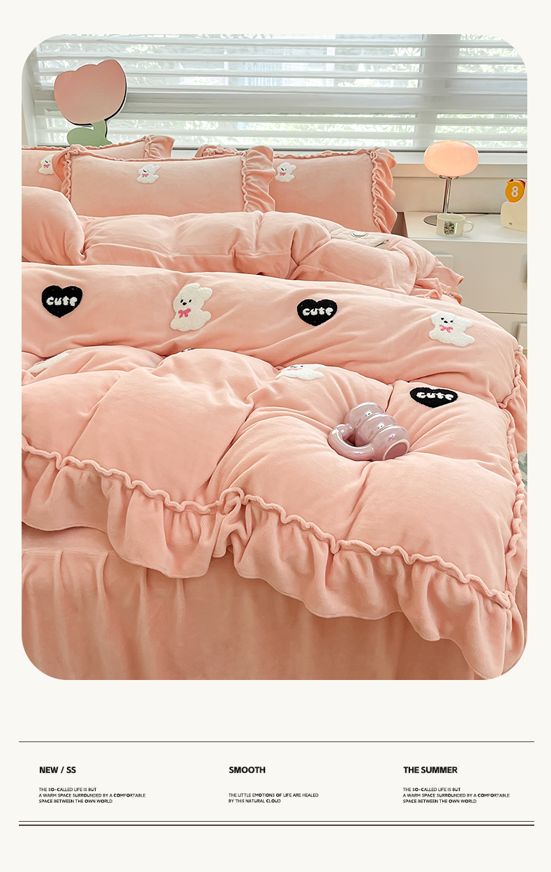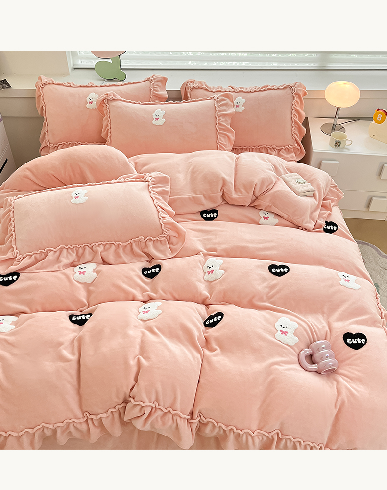 亨通家纺 2024新款高克重法式牛奶绒四件套系列-可爱风 可爱风-紫
