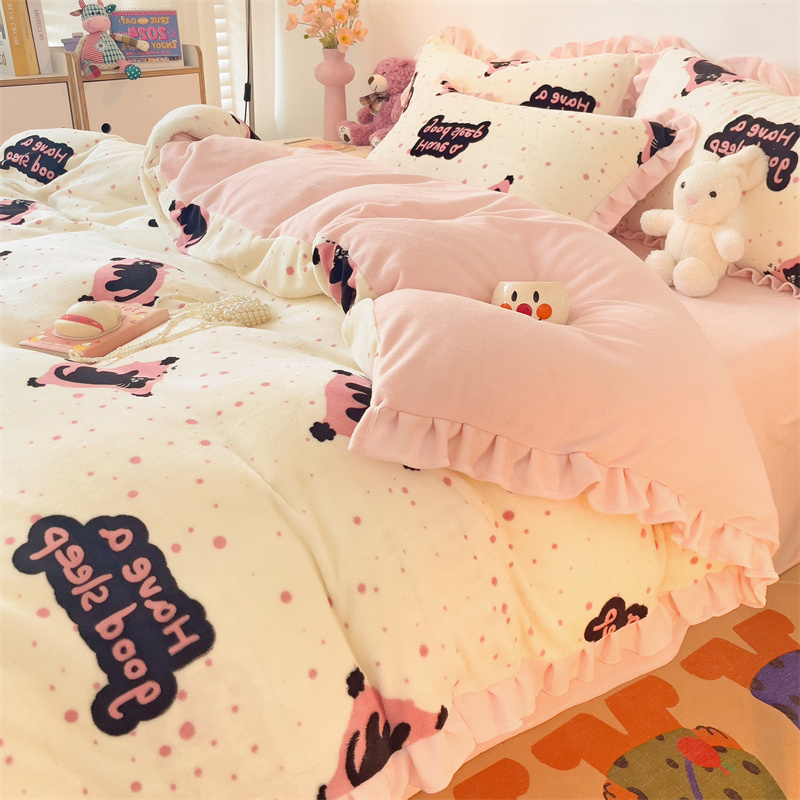(总)麦朵 2024高克重牛奶绒花边款四件套雪花绒金貂绒套件宝宝绒雕花绒被套,多彩南瓜,乖乖狗,哈基米-绿,橘子狗,领结粉,曼琳-粉,曼琳-绿,童话乐园,晚安猫,象先生