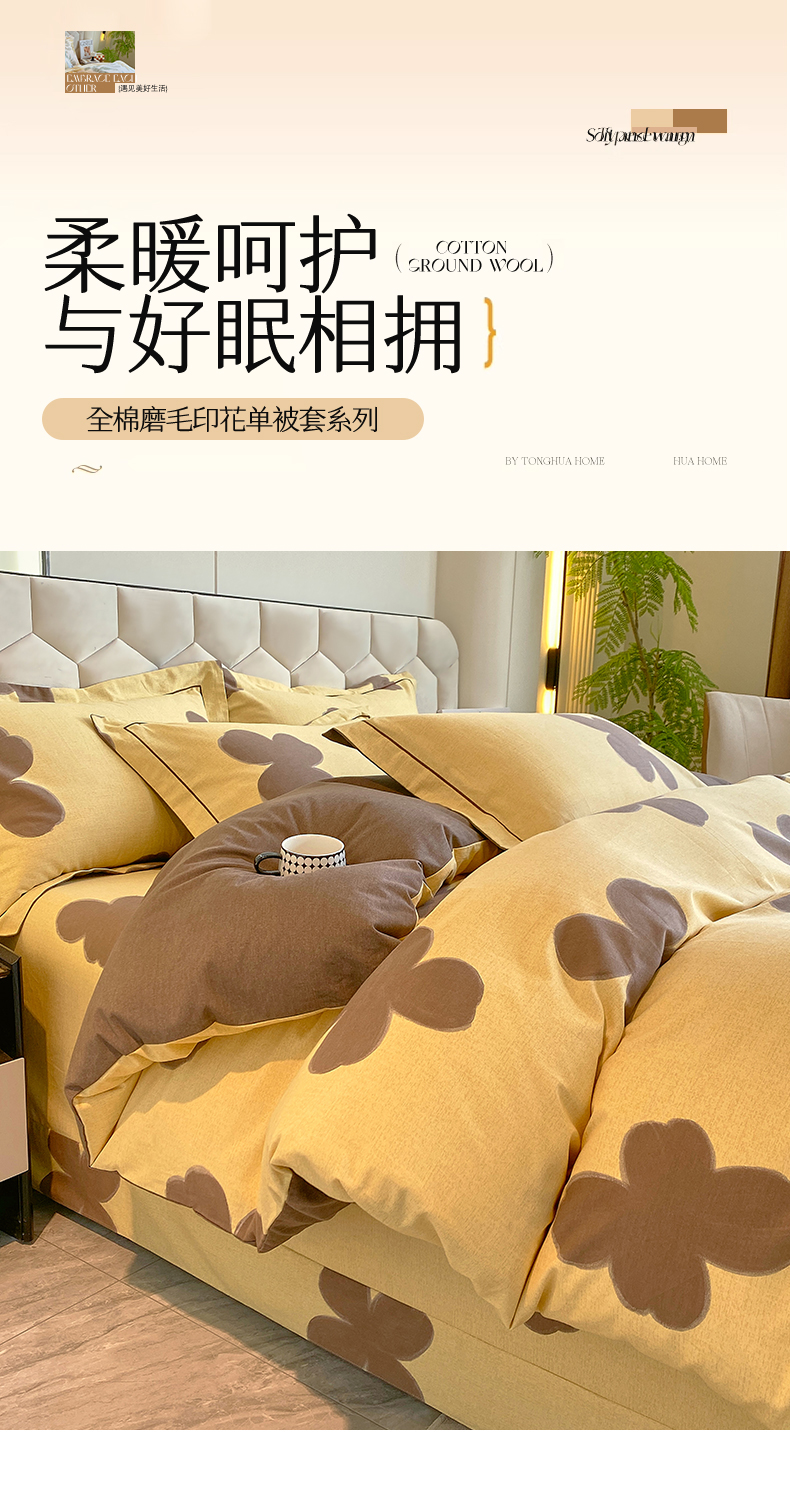 • 91家纺网 家纺一手货源 找家纺 2024新款全棉磨毛印花套件单品系列-单被套 暗香
