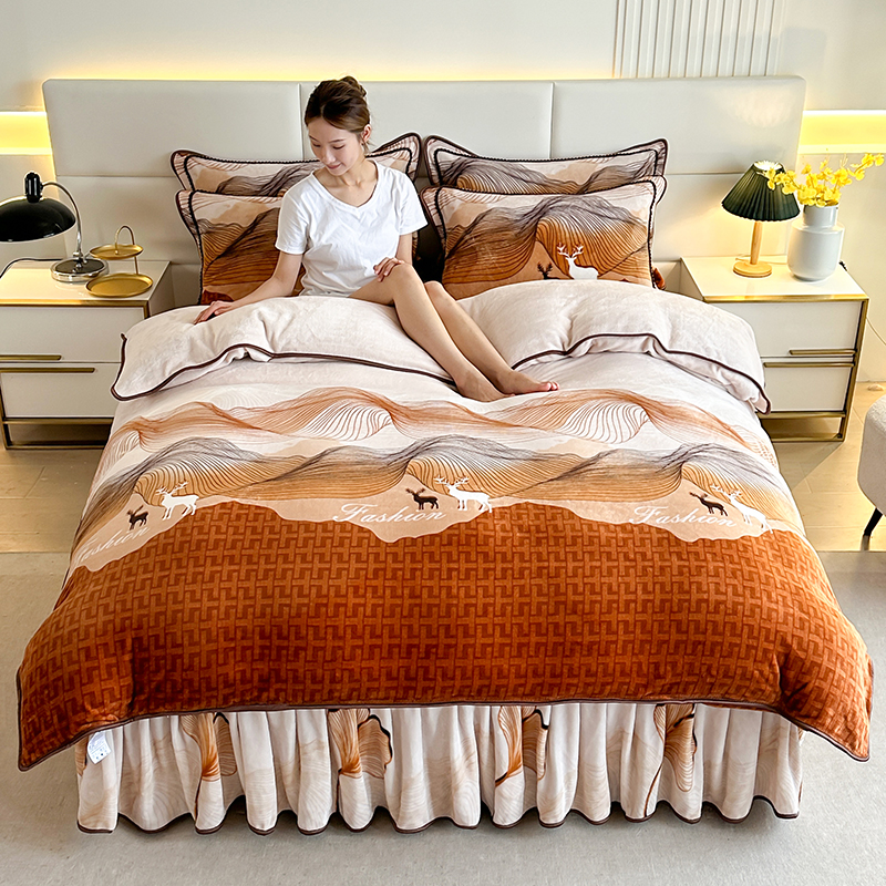 商品名称:雨洋2025新款加厚保暖8.5斤牛奶绒金貂婴儿绒四件套 情迷小鹿