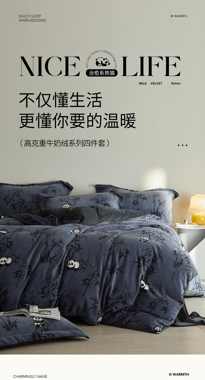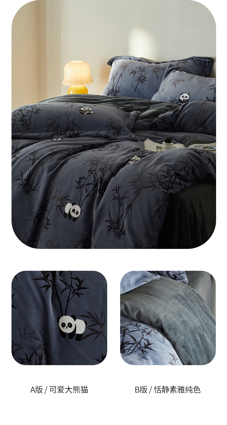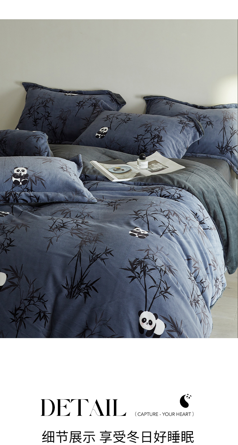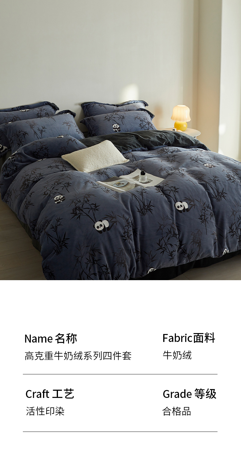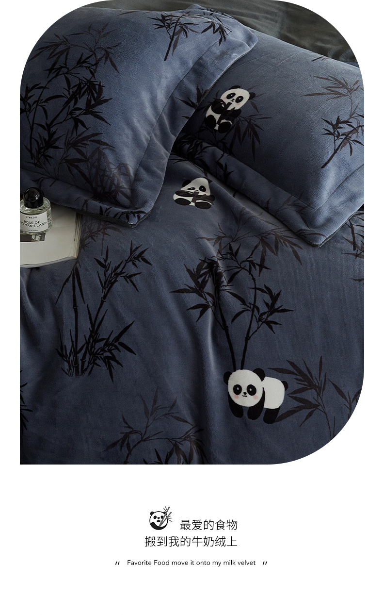 商品名称:千朵森 2024新款网红印花熊猫牛奶绒四件套 风格一 卡诺