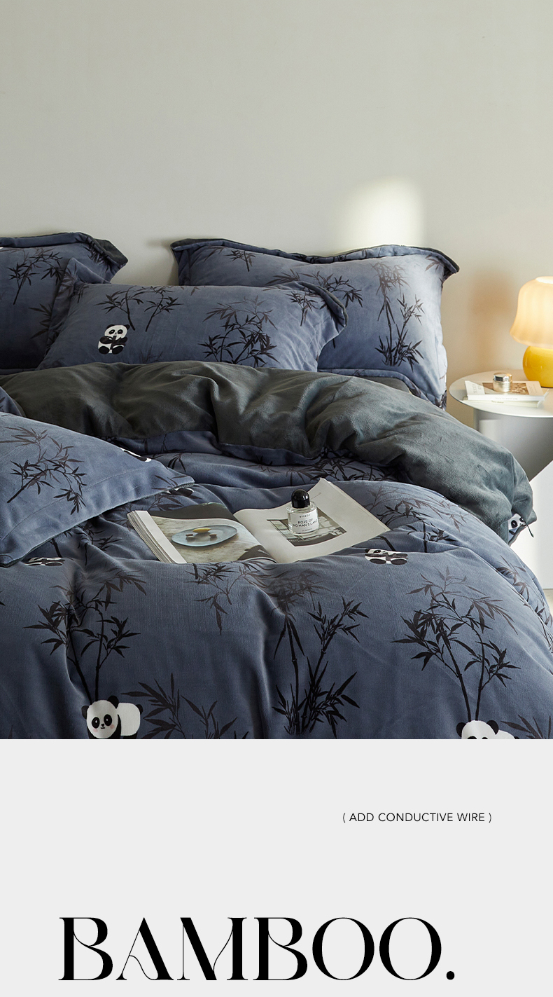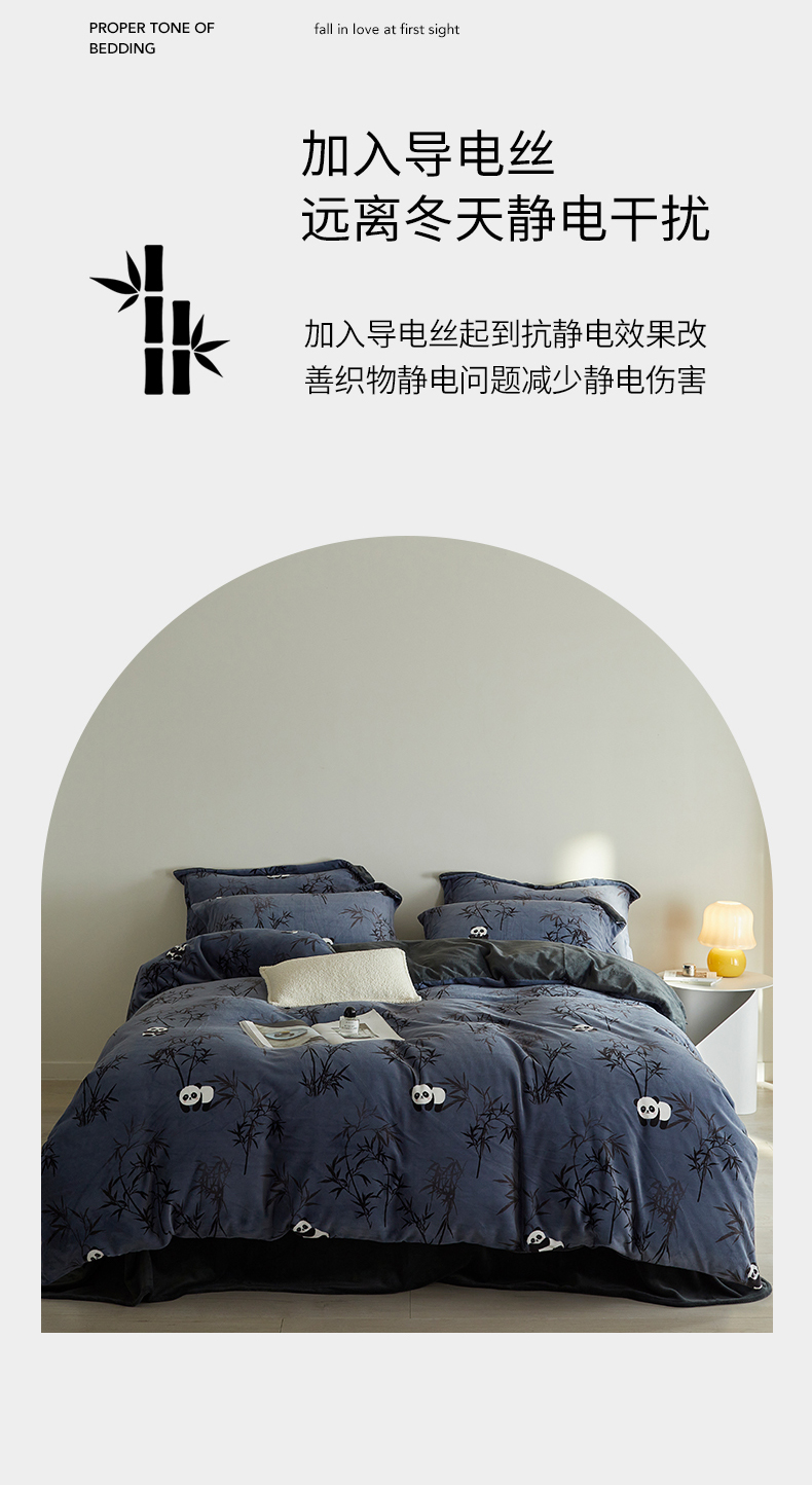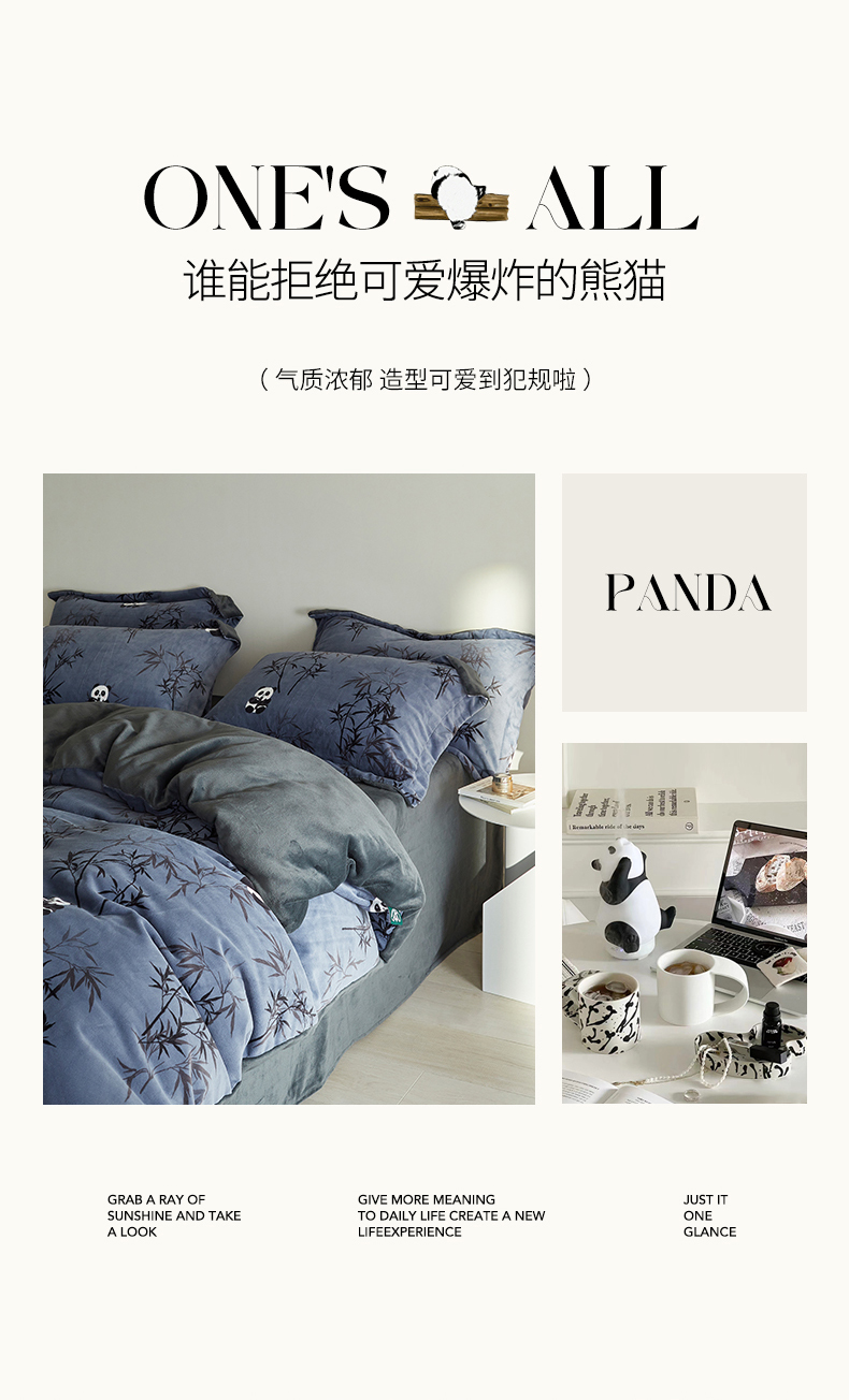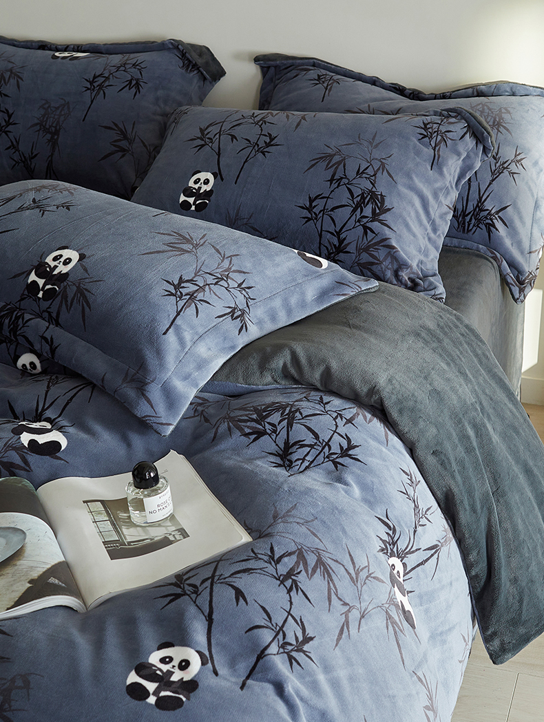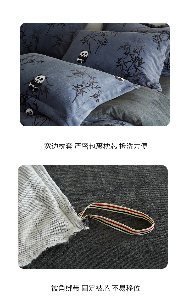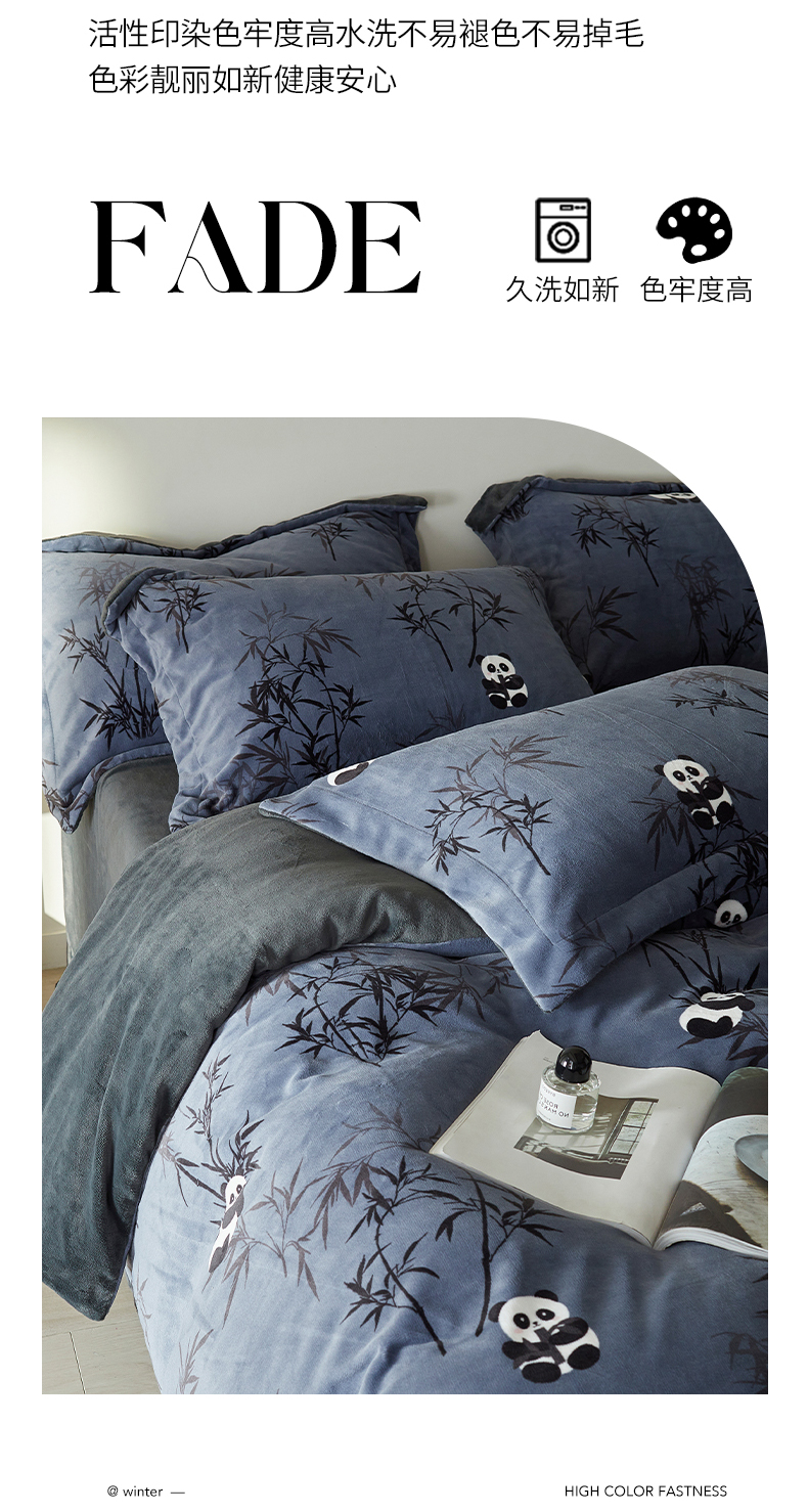 商品名称:千朵森 2024新款网红印花熊猫牛奶绒四件套 风格一 卡诺