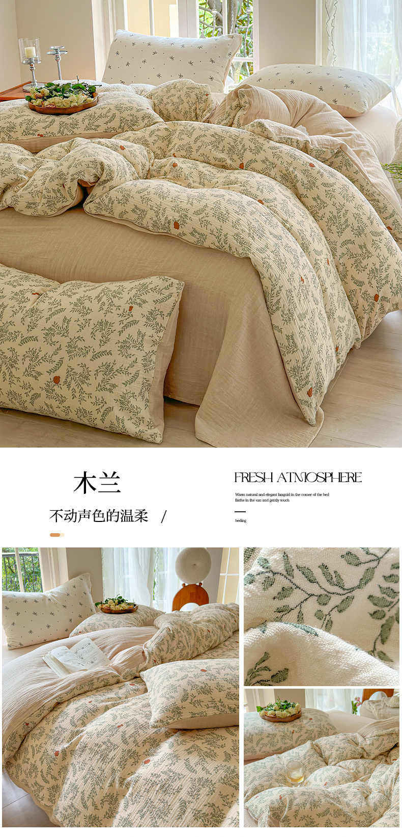 商品名称:木楌 2025新款全棉A类皱皱纱印花四件套木兰