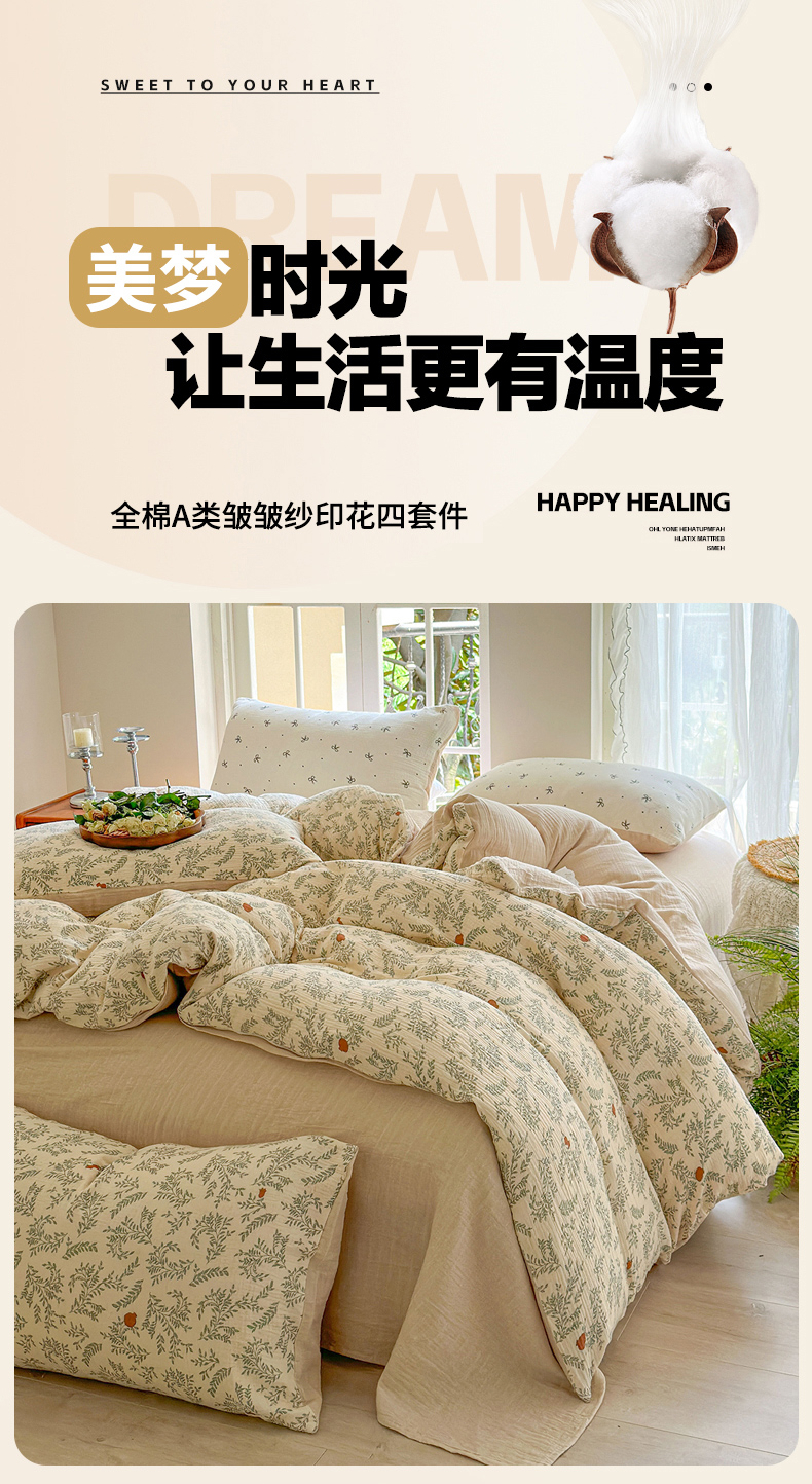 (总)木楌家居 2025新款A类全棉皱皱纱印花四件套,甜心宝贝,薄雾玫瑰,枫林 咖,枫林 绿,可颂,兰亭序,梦蝶,觅森,墨韵,晚棠,小确幸,伊洛娜,云梦泽,半夏 粉,草莓啵啵,初微,可心 兰,可心咖,哈尼,兰菲,黎夏 粉,黎夏 兰,木兰,奶油爱心,宁静,清颜,芮汐,时序 黄,时序 桔蓝,苏潼,西棠,潇湘,星月,悠然,月瑶