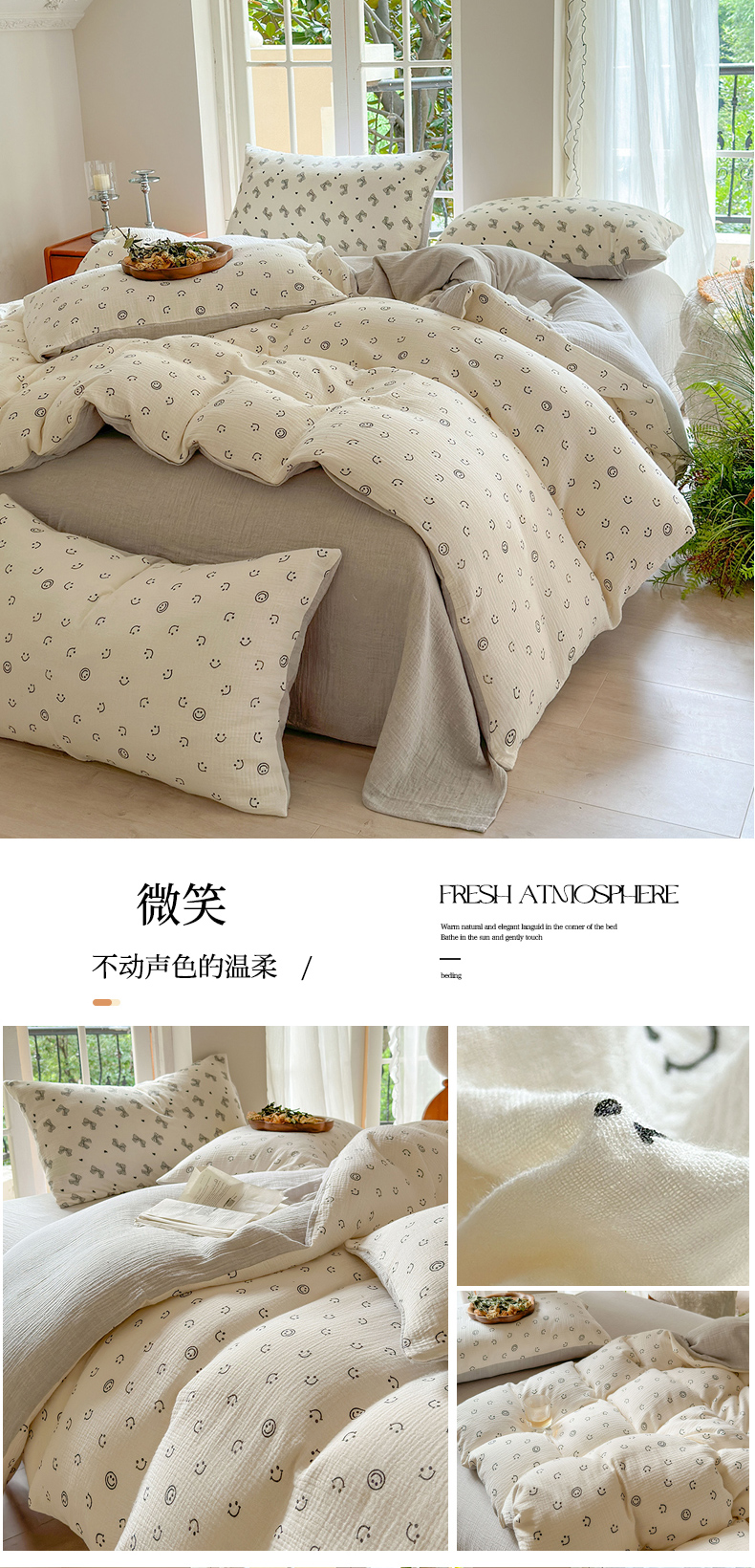商品名称:木楌 2025新款全棉A类皱皱纱印花四件套 微笑