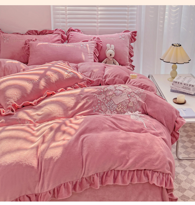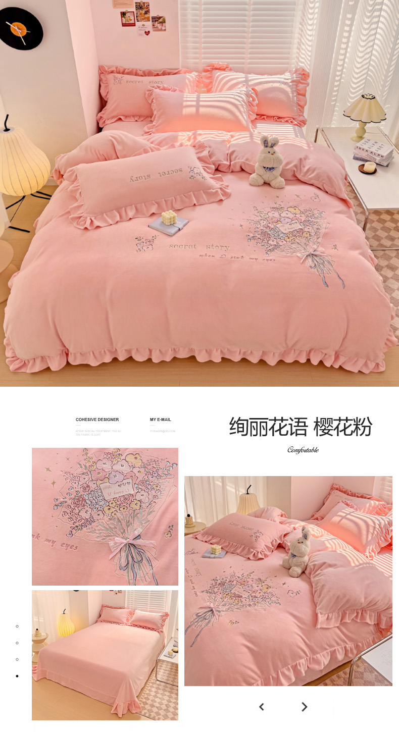 当前位置: 91家纺网 > 商品网购 > 床品套件 > 四件套 > 牛奶绒四件套 > 星尚家纺 2024新款全消光230g牛奶绒韩版绣花绒四件套-绚丽花语 雾霾蓝