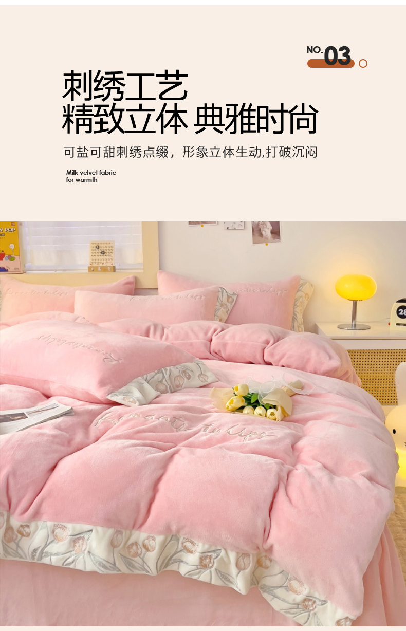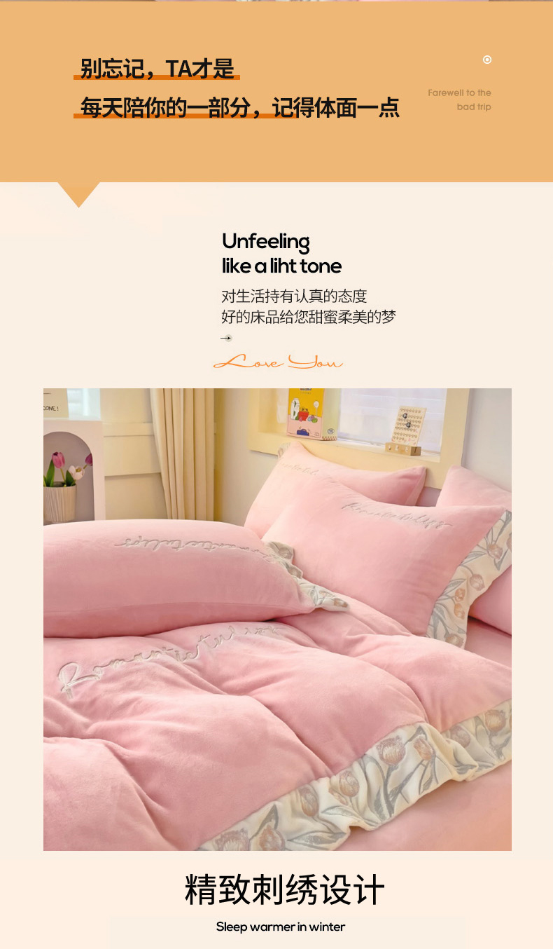 (总)星尚家纺 2024新款全消光A类230g牛奶绒刺绣保暖绒四件套-郁金香,淡雅粉,梵星绿,高级灰,蔷薇紫,婴儿蓝,樱花粉