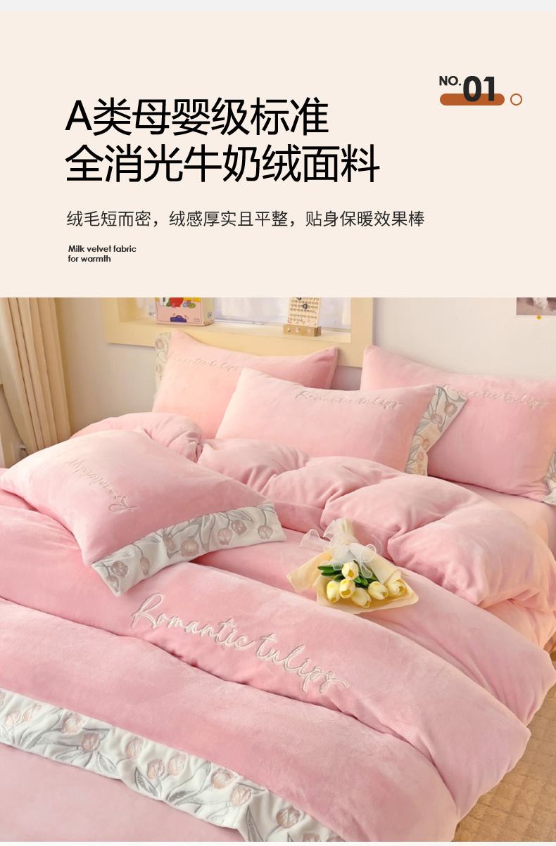 商品名称:星尚家纺 2024新款全消光A类230g牛奶绒刺绣四件套-郁金香 樱花粉