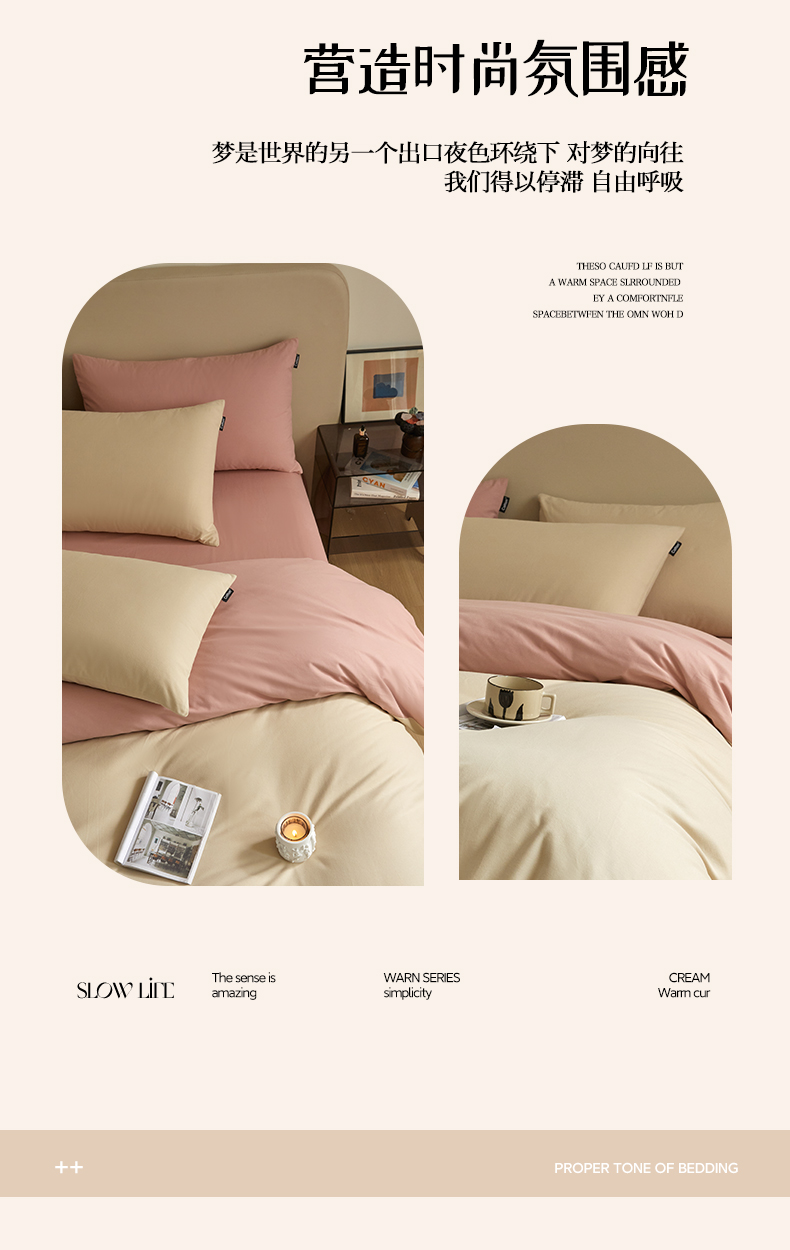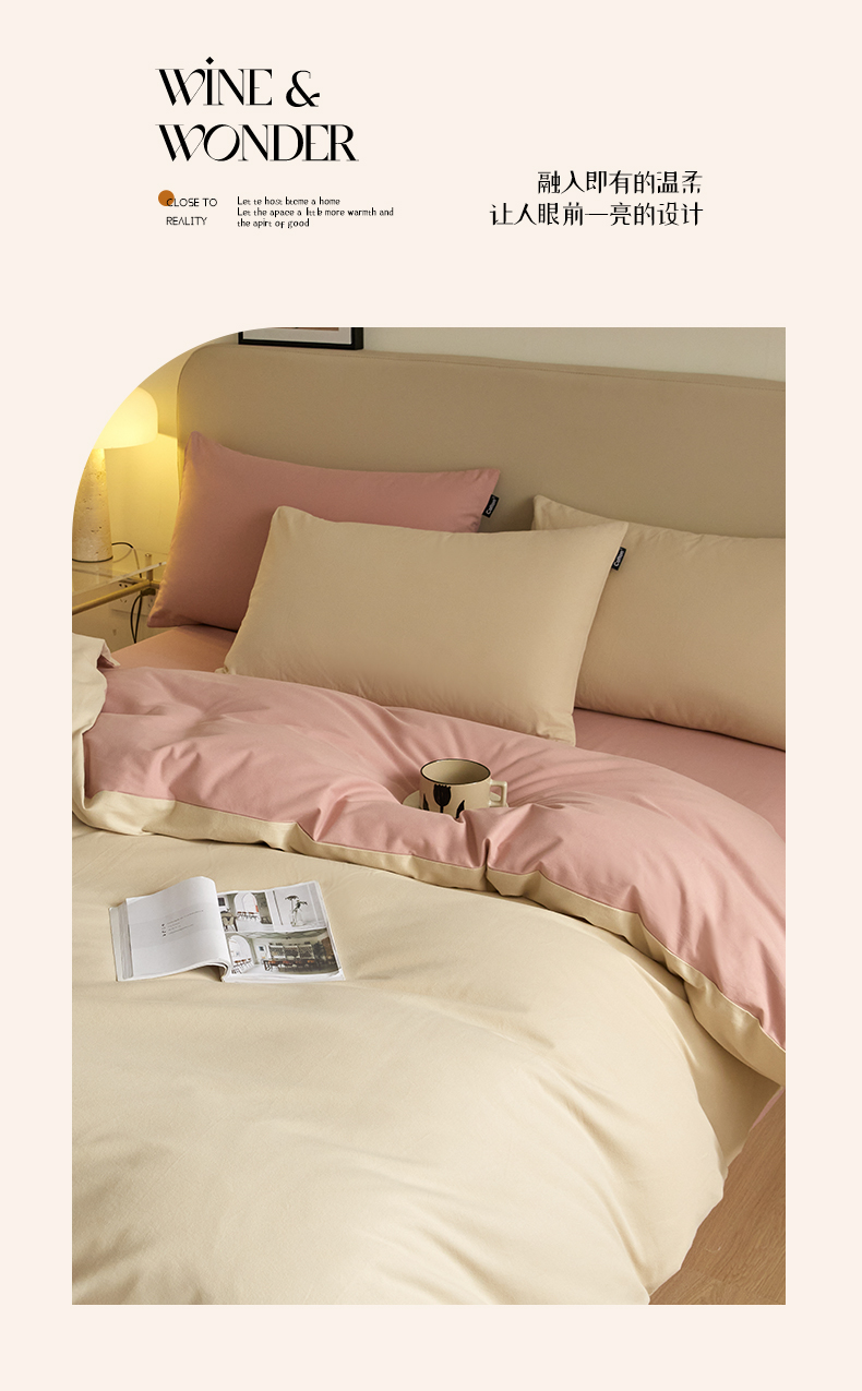 • 91家纺网 家纺一手货源 找家纺 涵宸家纺 2024新款全棉磨毛四件套纯厚系列(轻)-单被套 纯厚(奶茶色+豆沙)