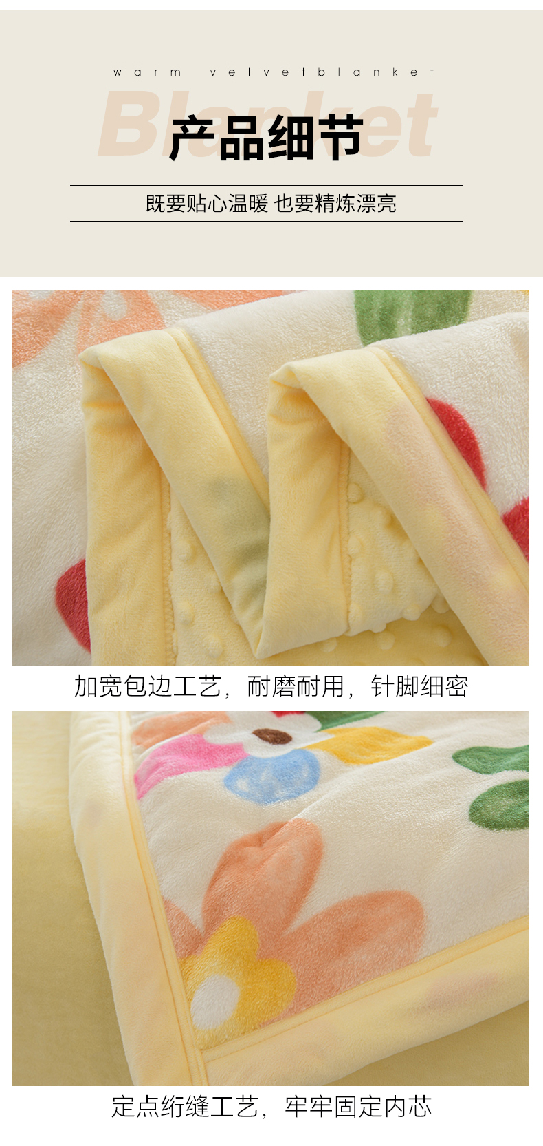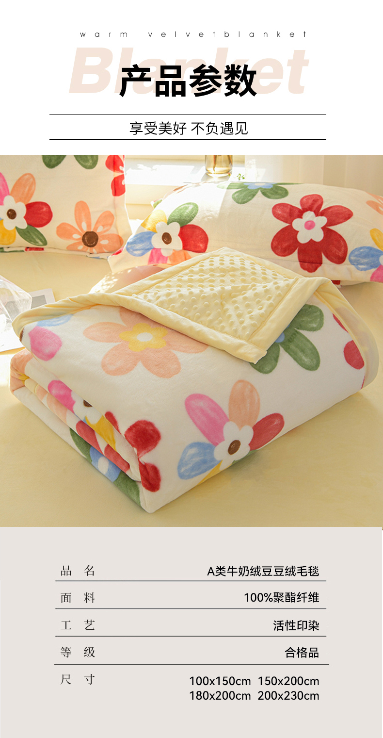 圣楚家纺 2024新款豆豆绒三层毛毯毯子 豆豆毯蓝